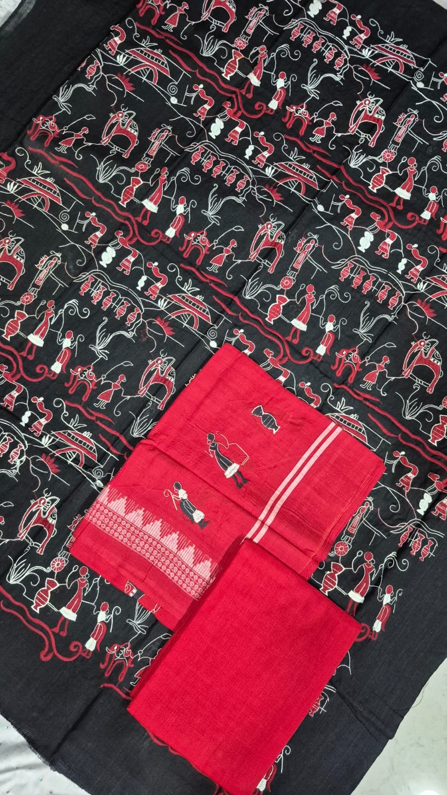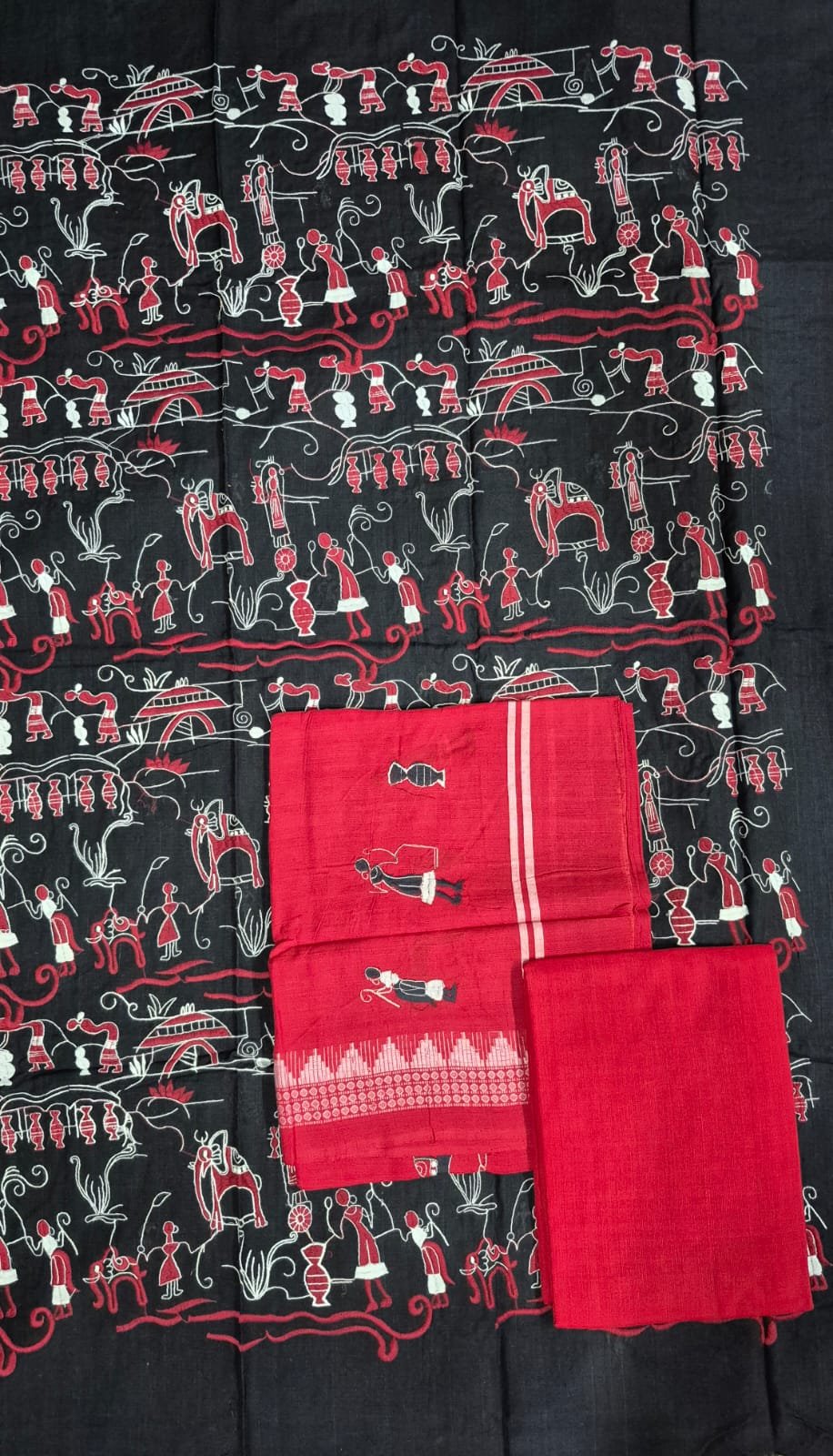 Black and red pattern bomkai cotton dress material