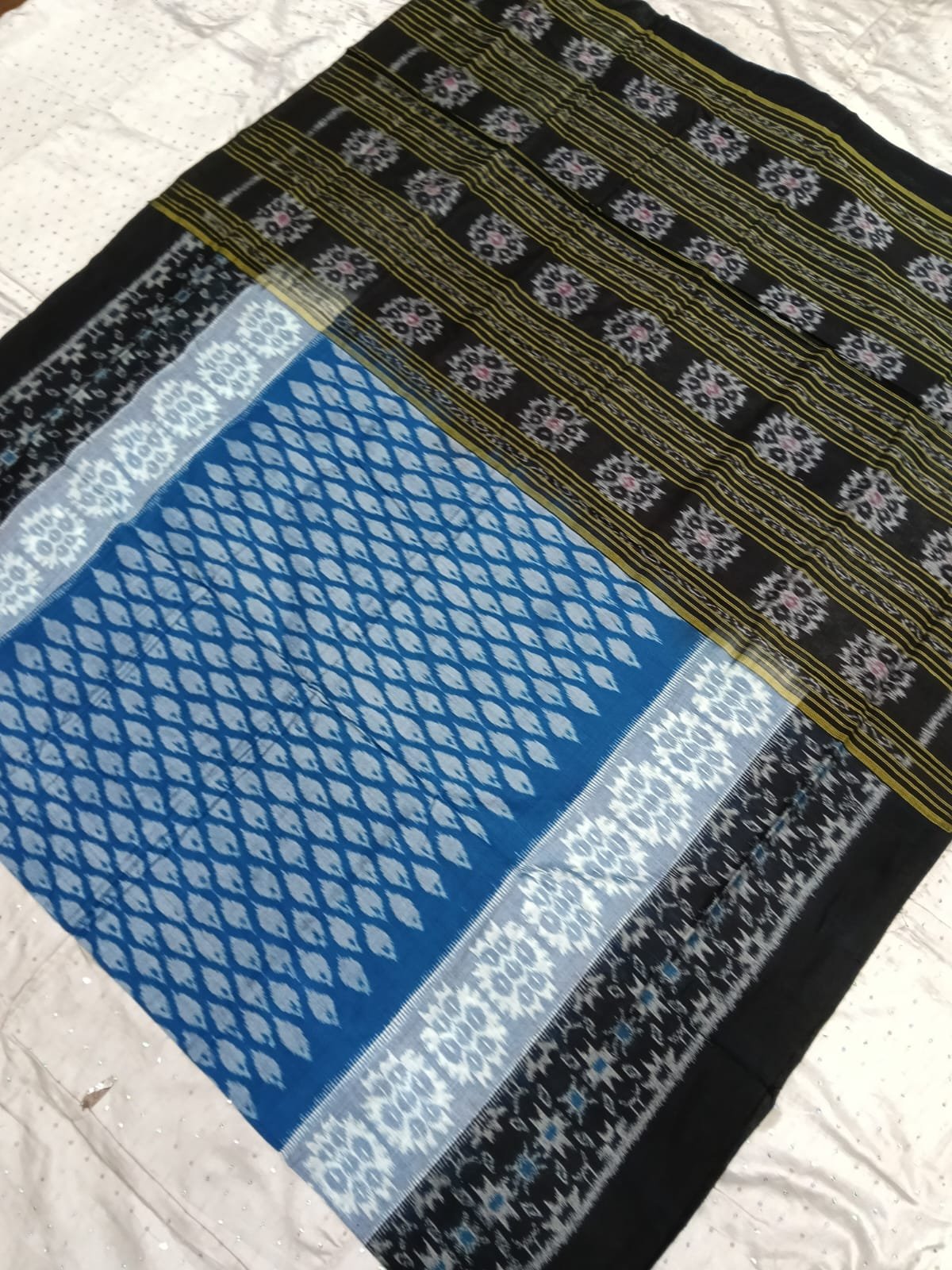 Blue and black sambalpuri cotton saree with blouse