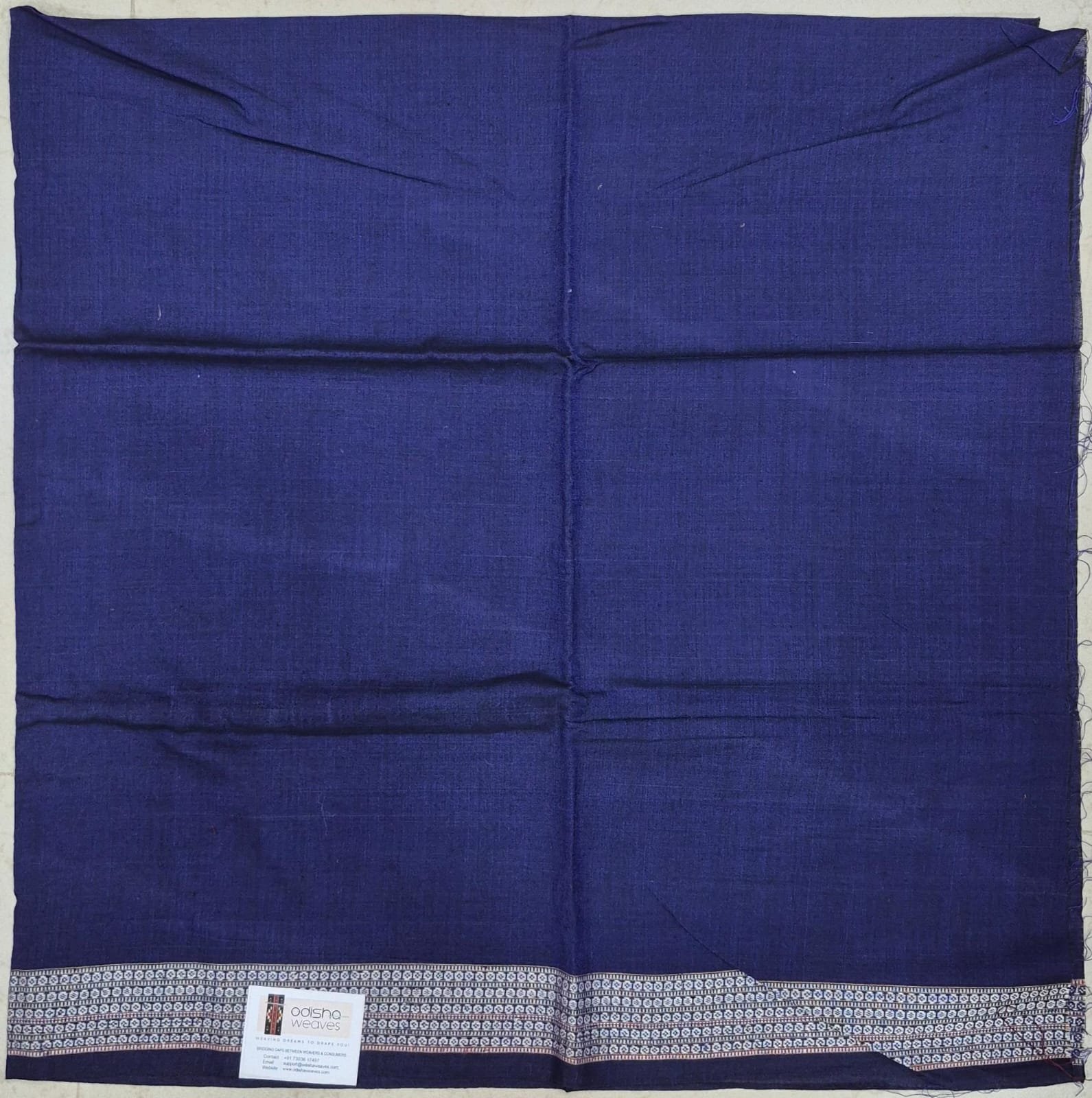 Blue cotton blouse piece with white small rudraksha border