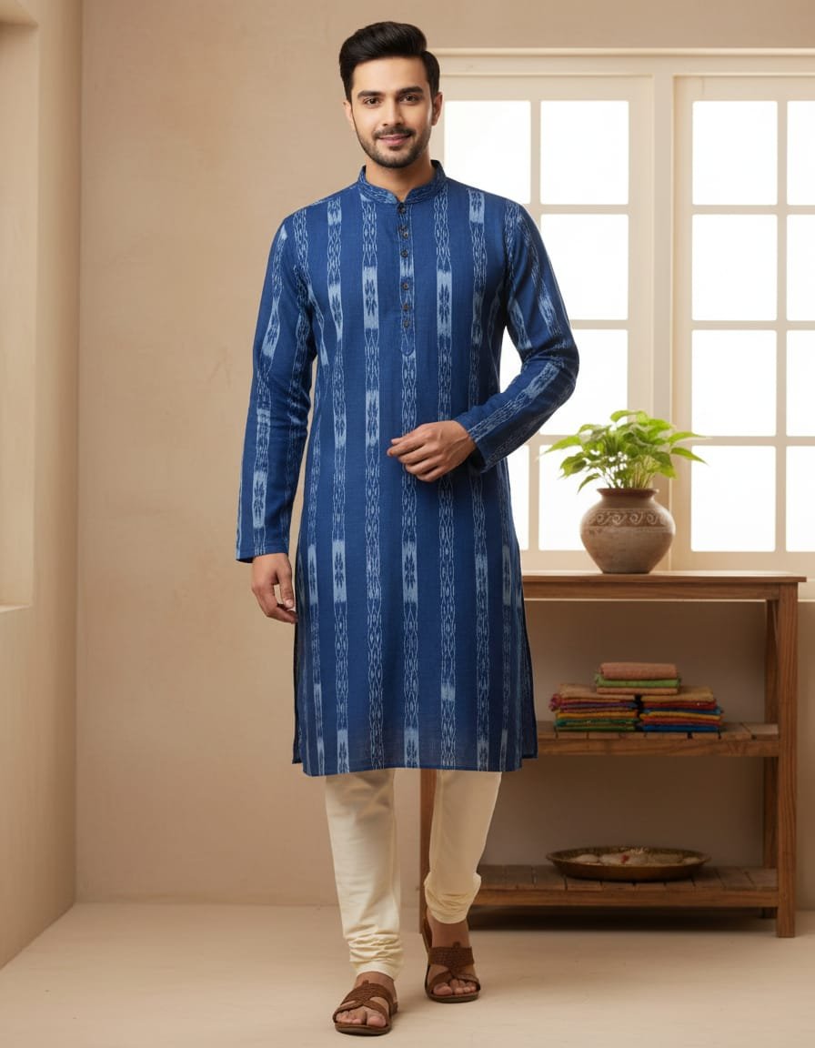 Blue sambalpuri long kurta