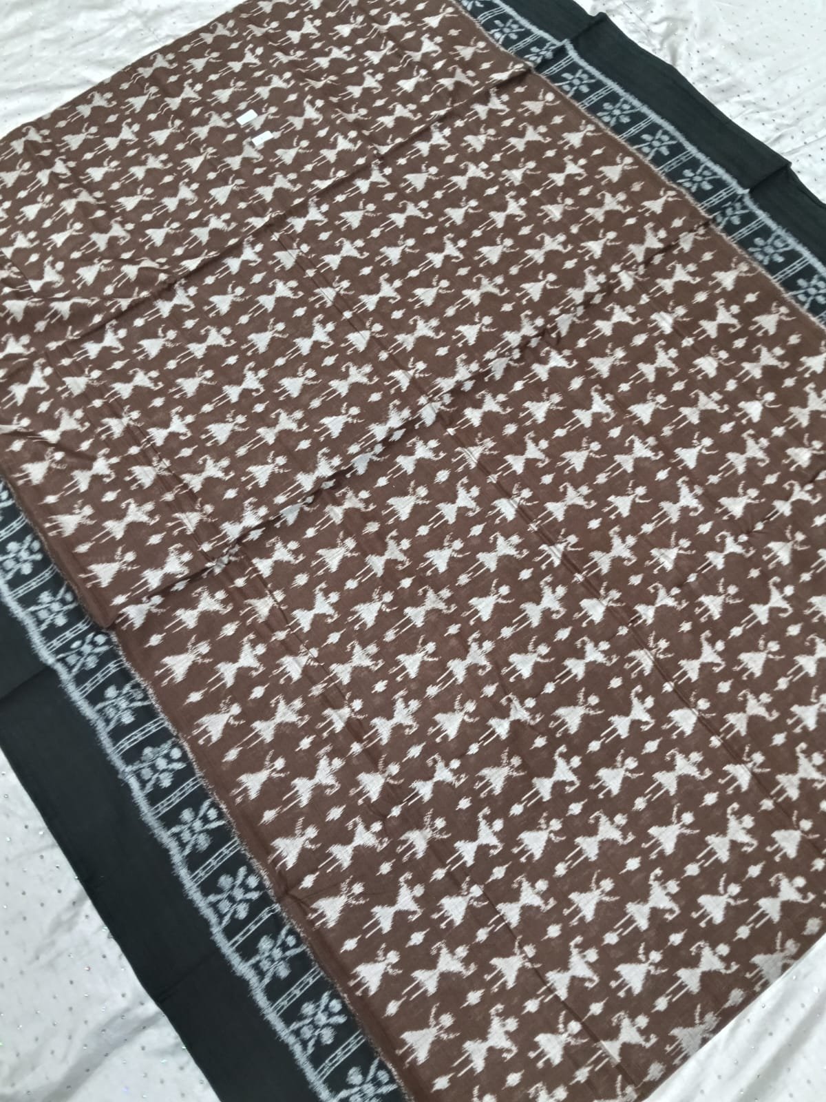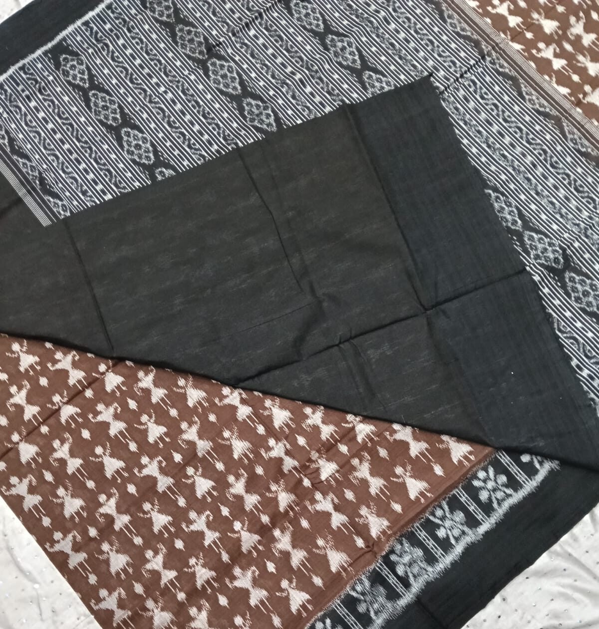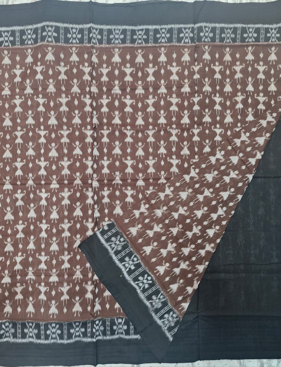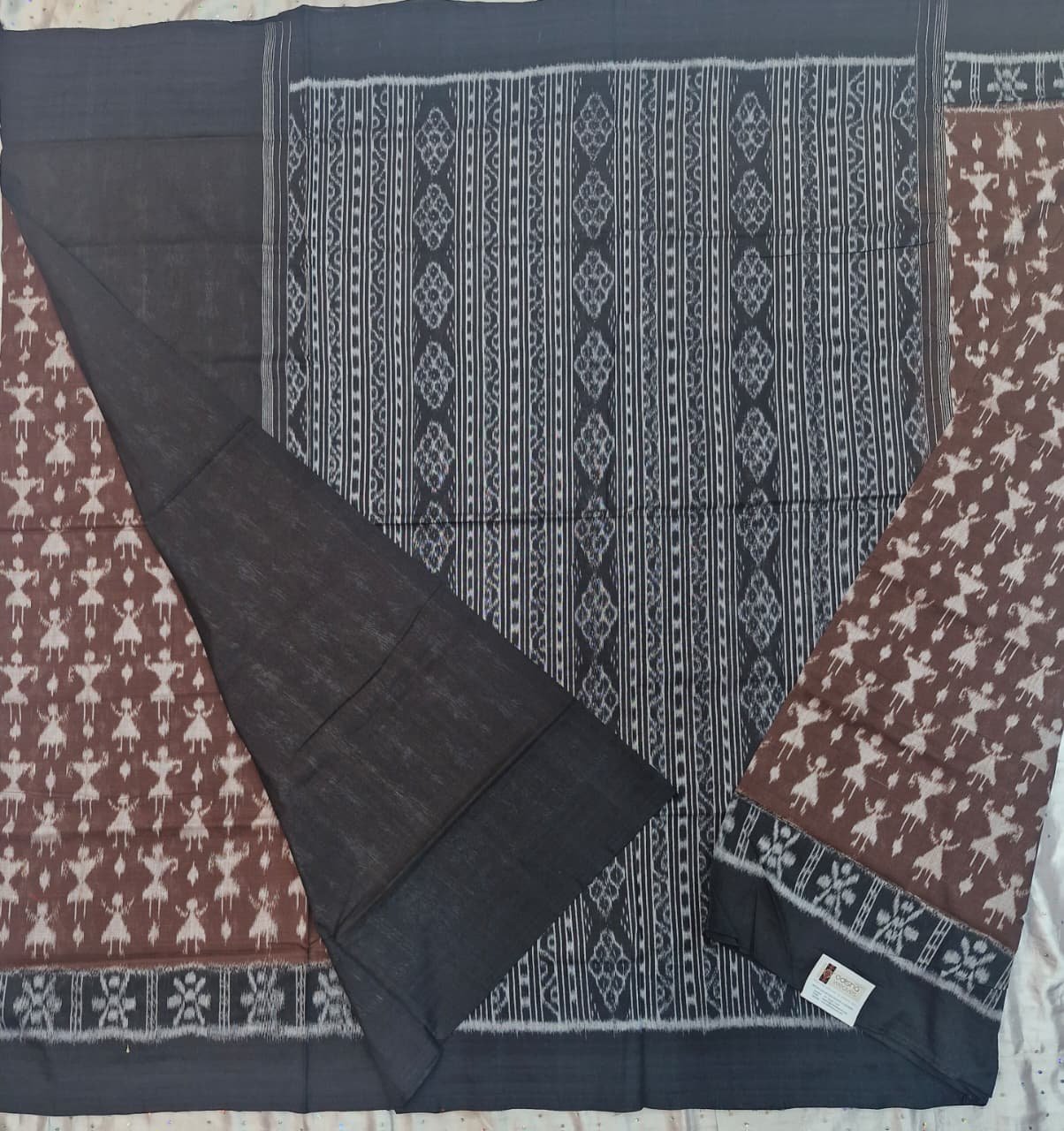 Brown and black tribal art pattern sambalpuri cotton saree with blouse