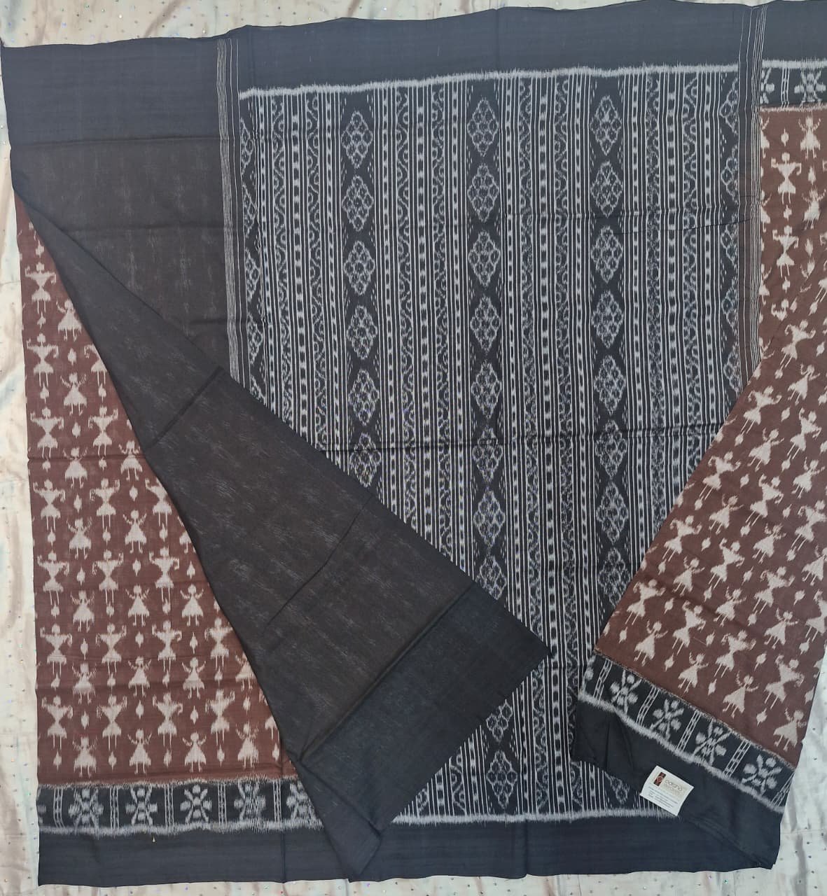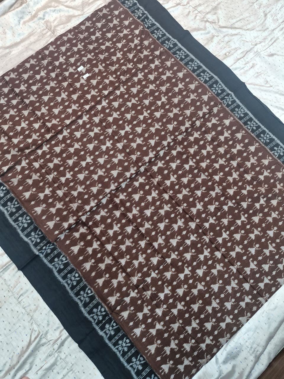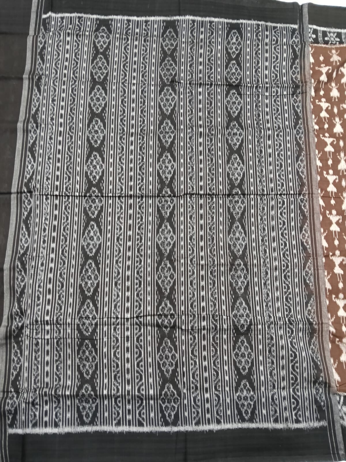 Brown and black tribal art pattern sambalpuri cotton saree with blouse