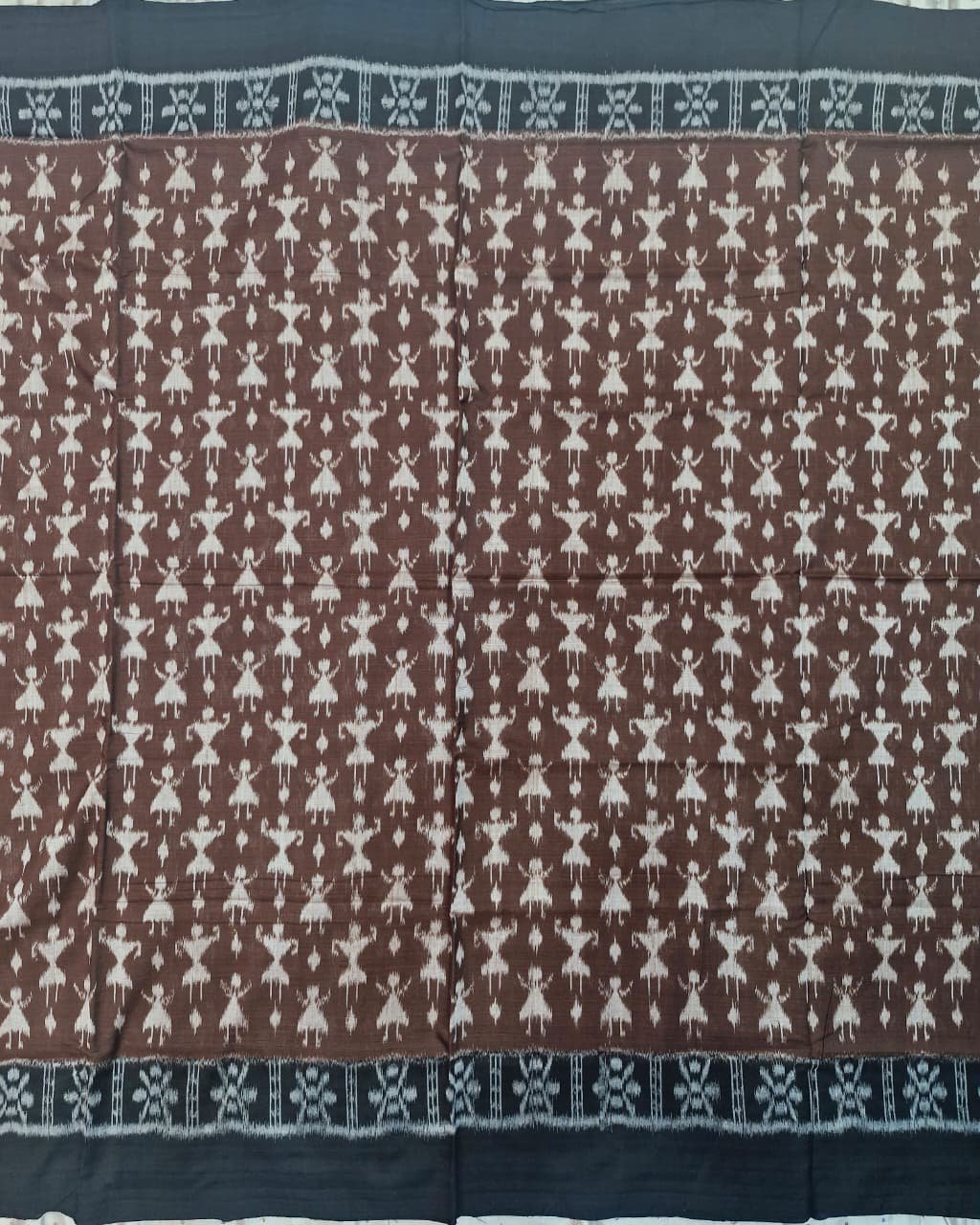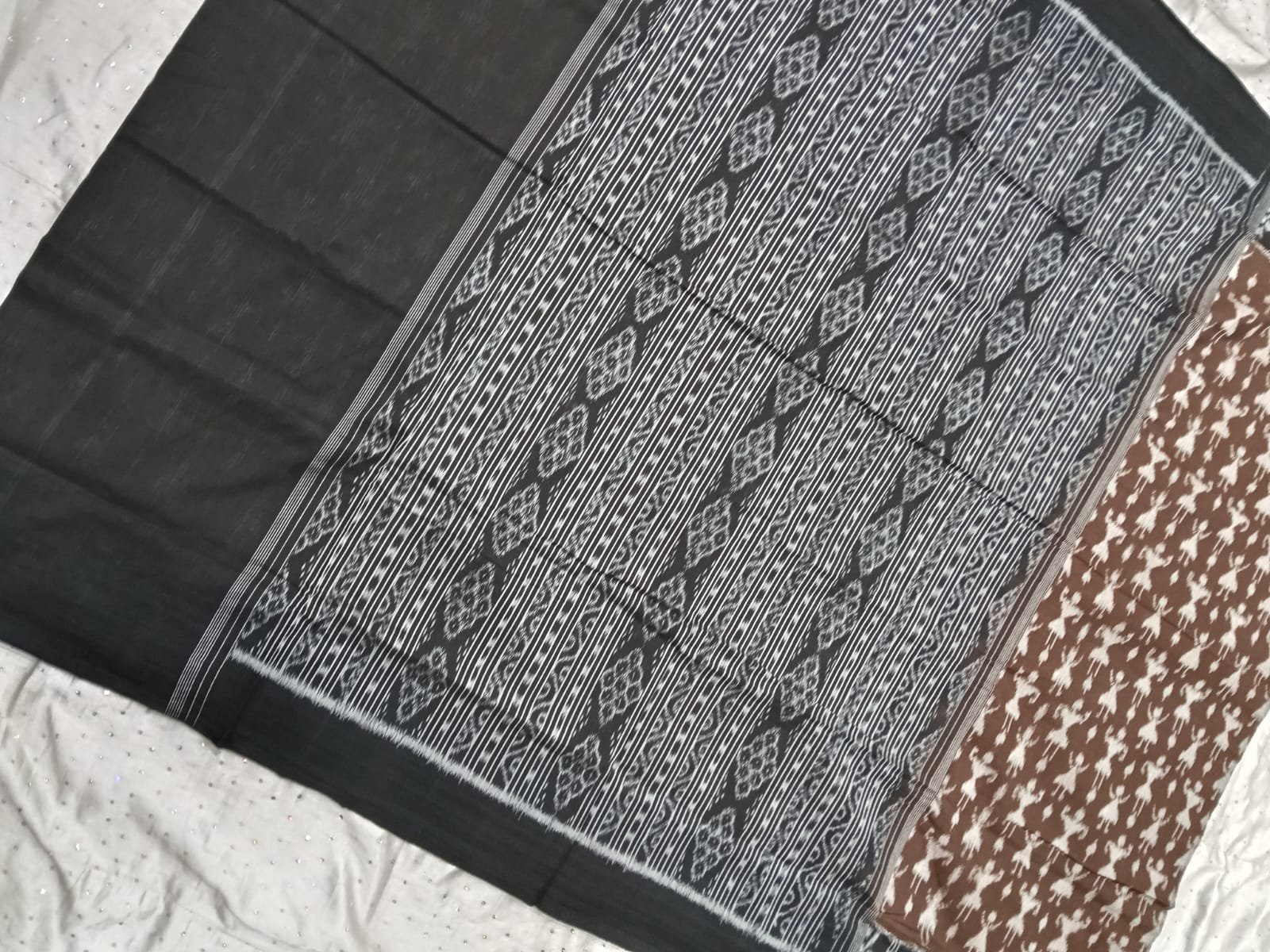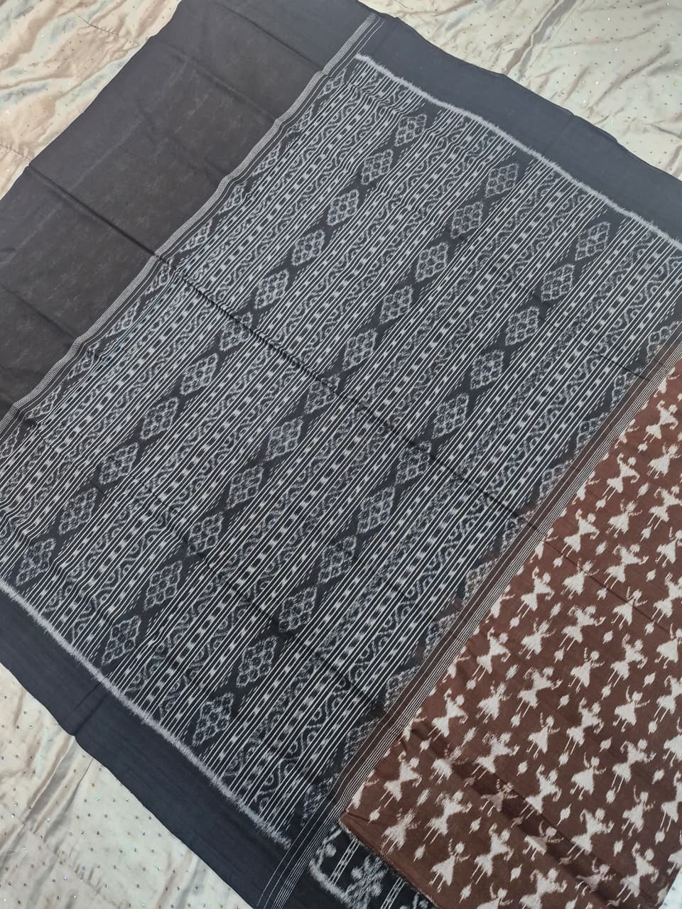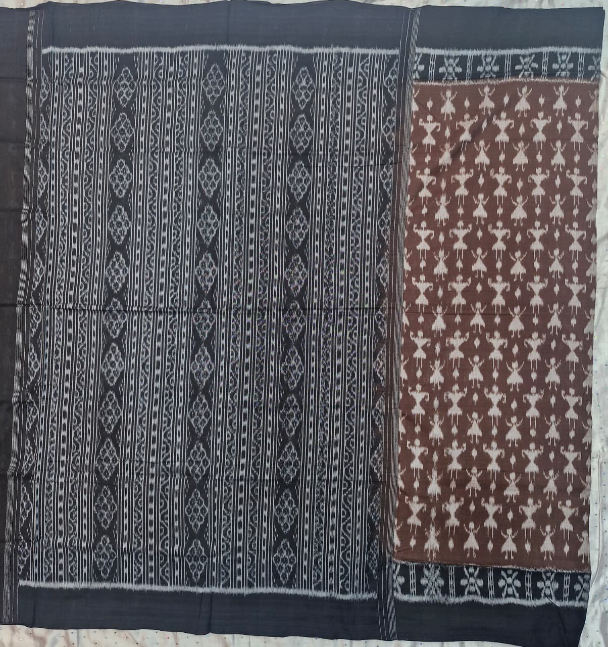 Brown and black tribal art pattern sambalpuri cotton saree with blouse