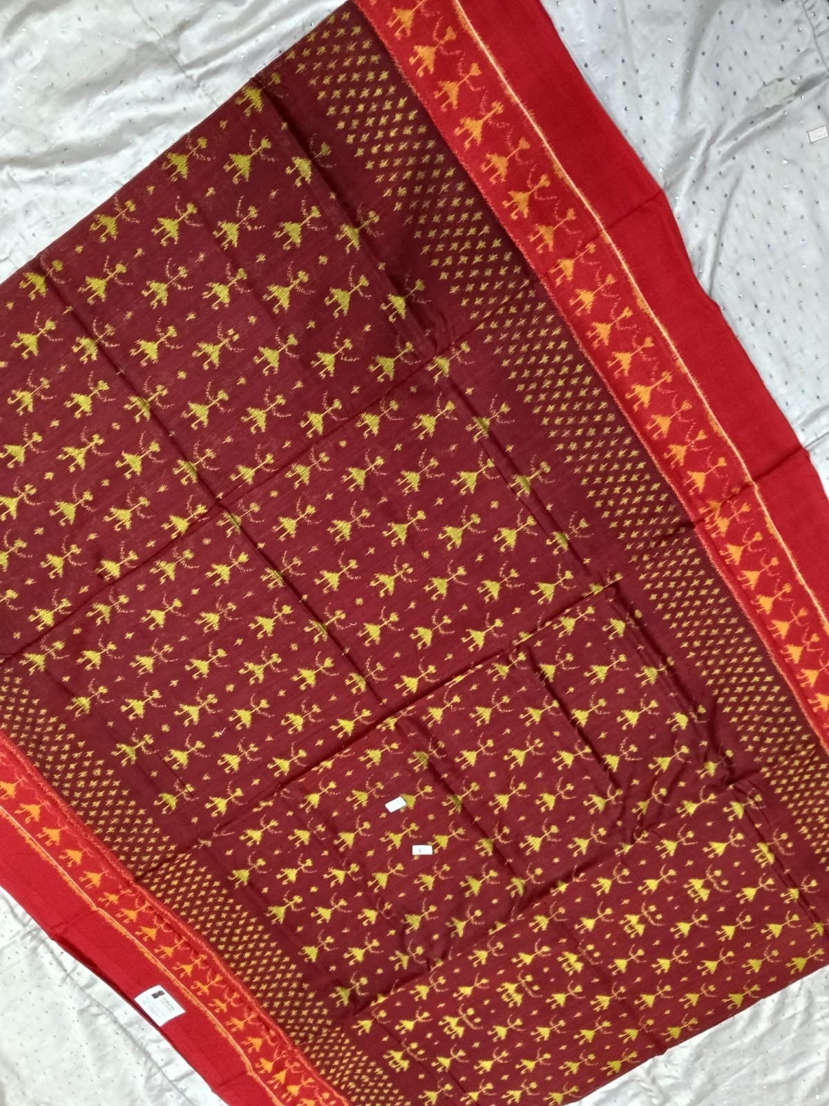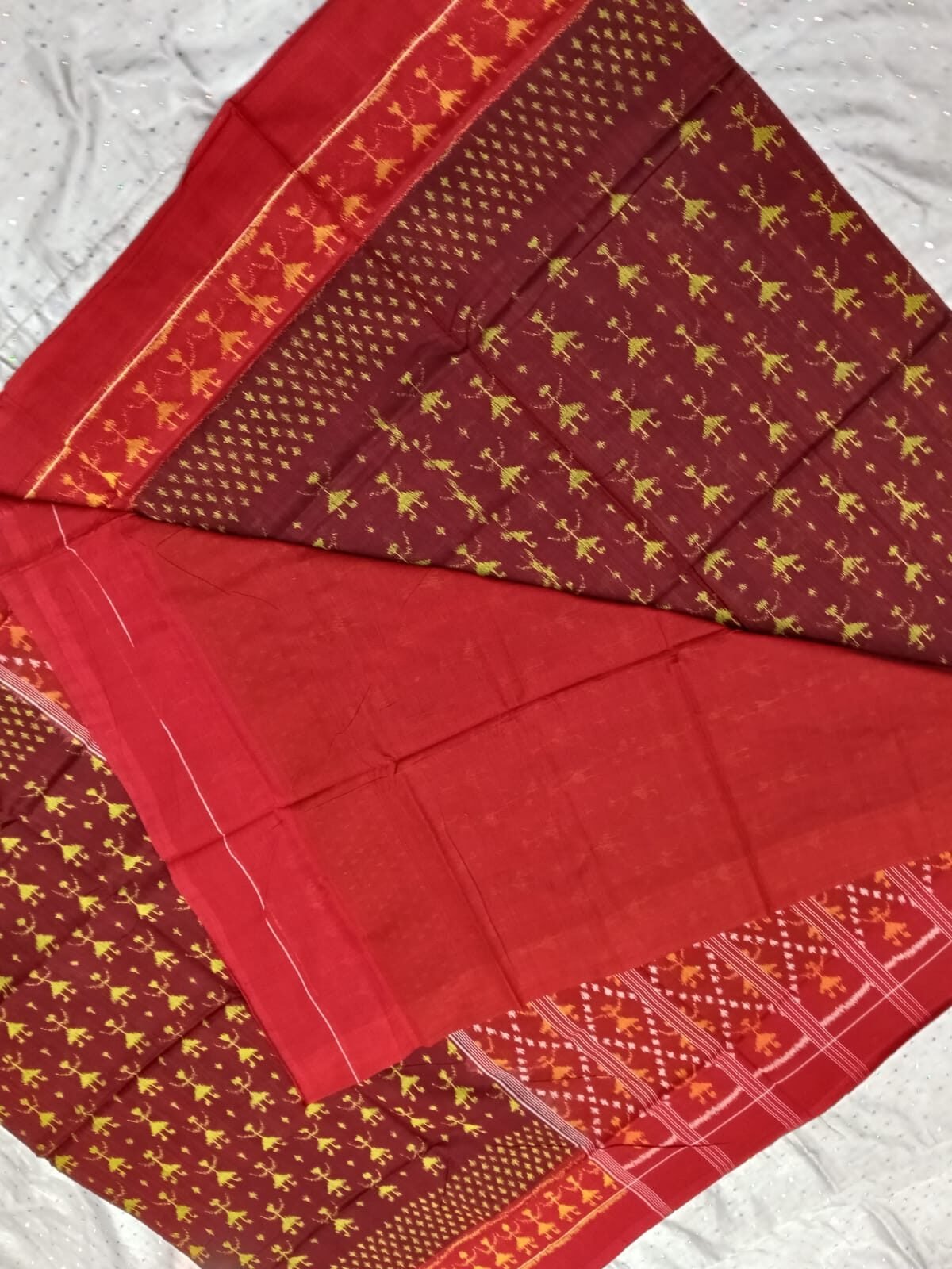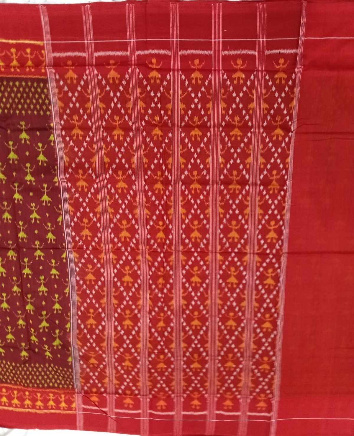 Brown and red tribal pattern sambalpuri cotton saree with blouse