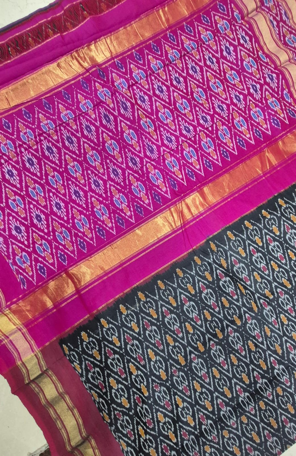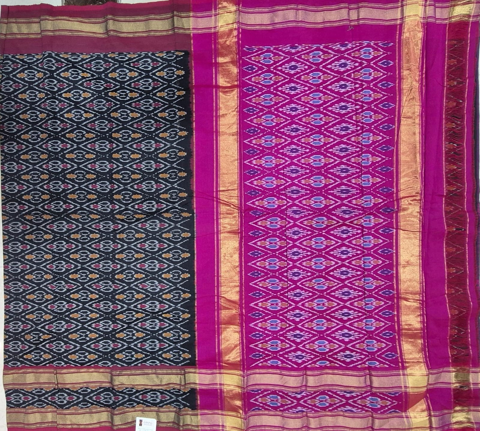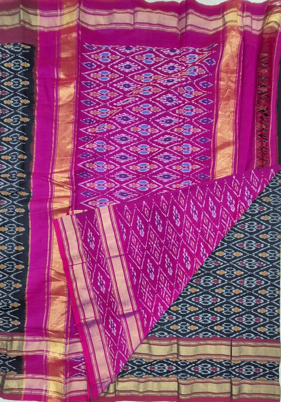 Gas mercerised ikkat designs black and pink cotton saree with blouse