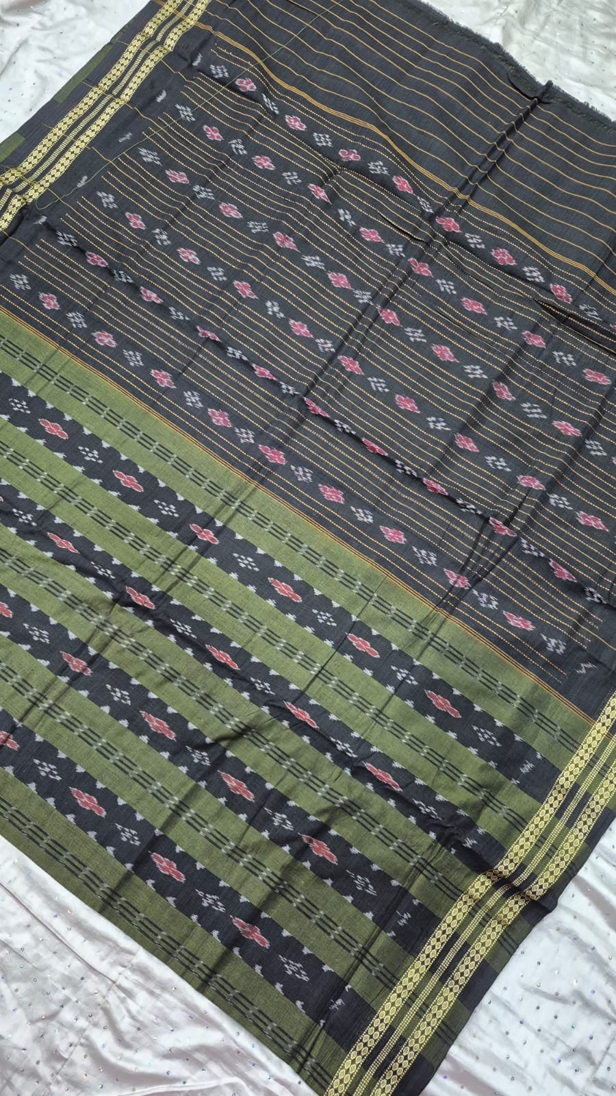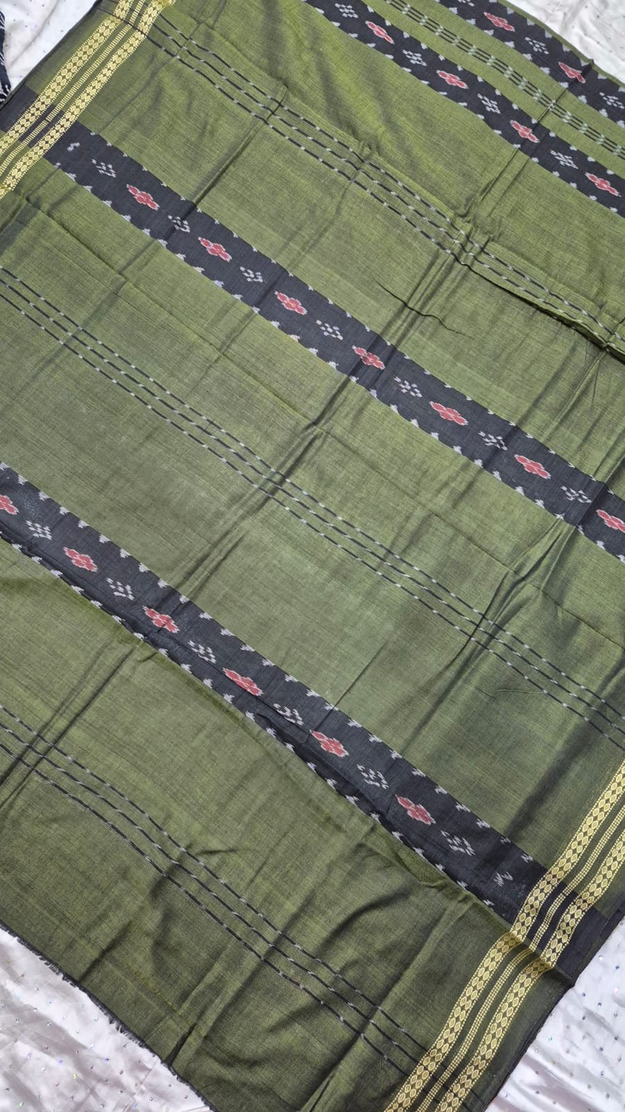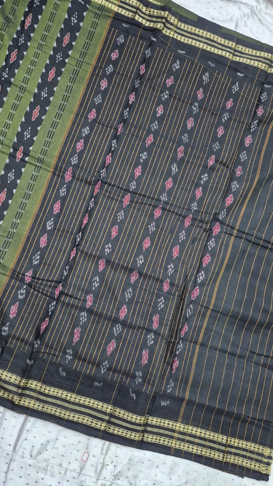 Green and black sambalpuri cotton saree with border
