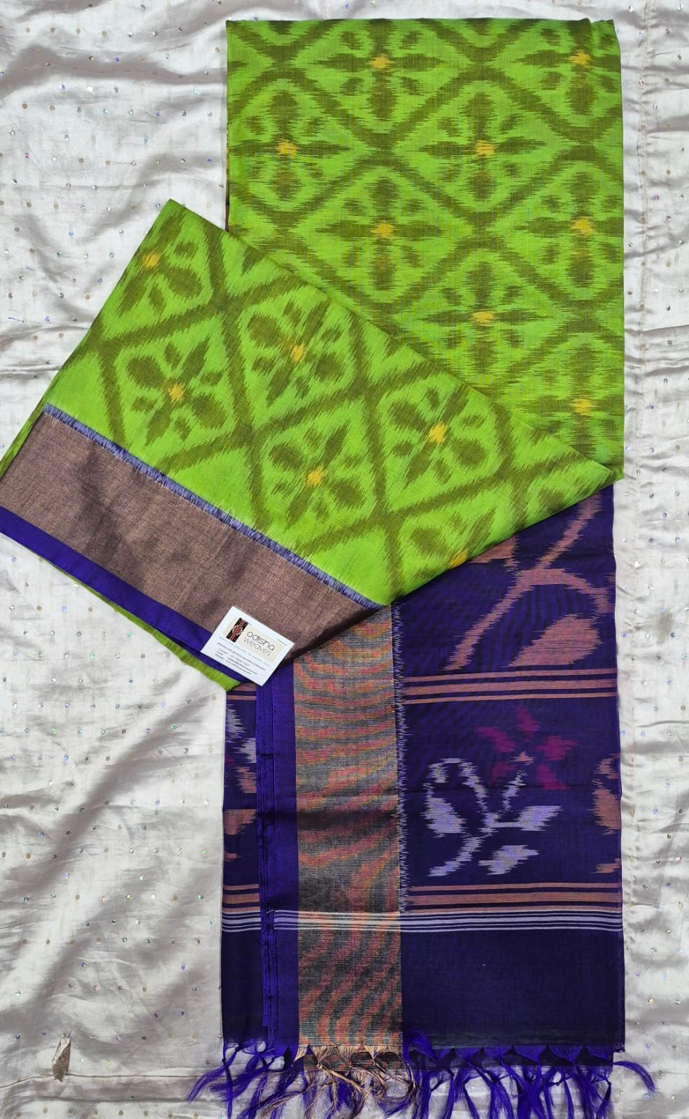Green and blue sico silk saree with blouse