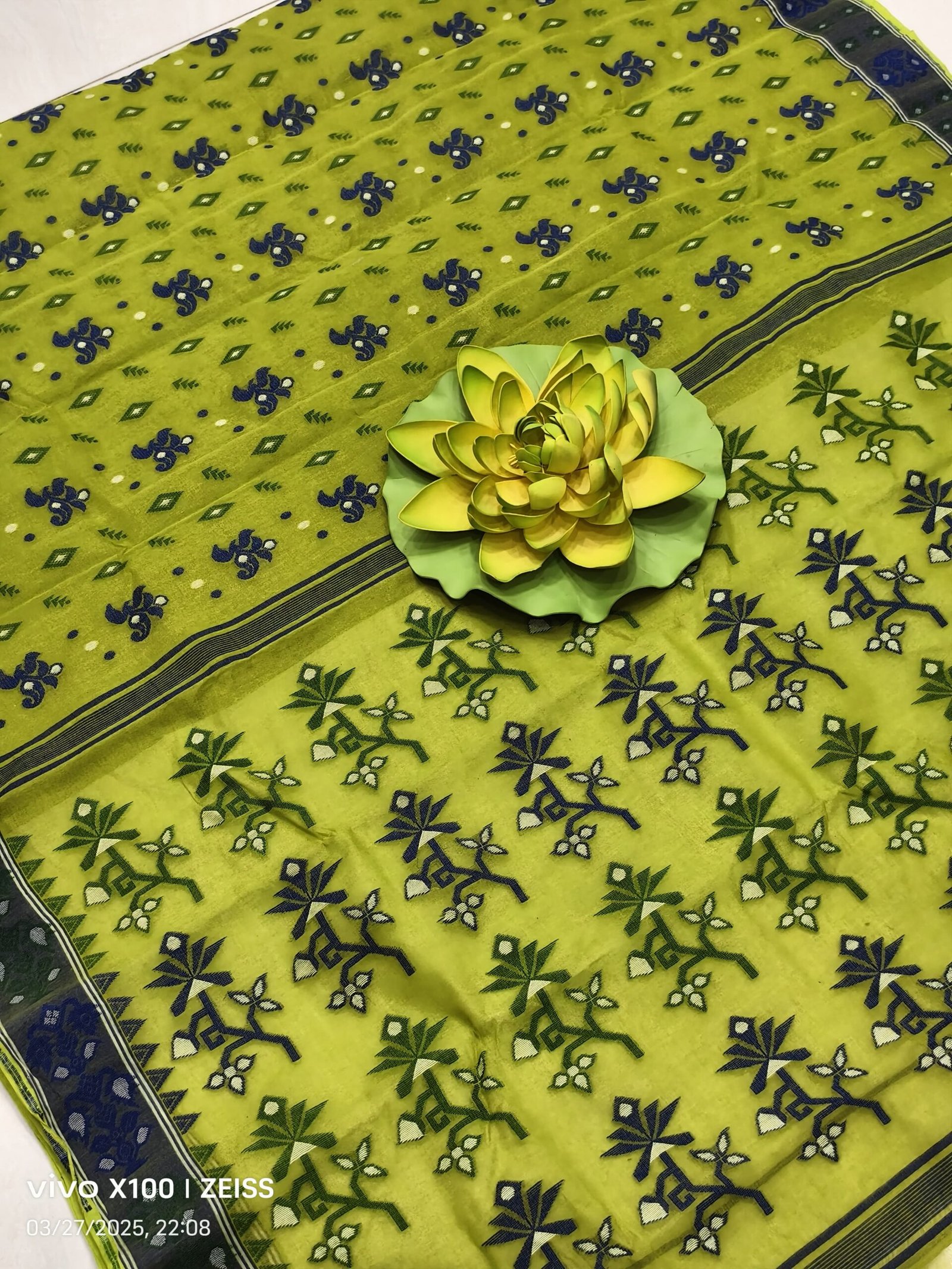 Green baluchari pure cotton saree with blouse