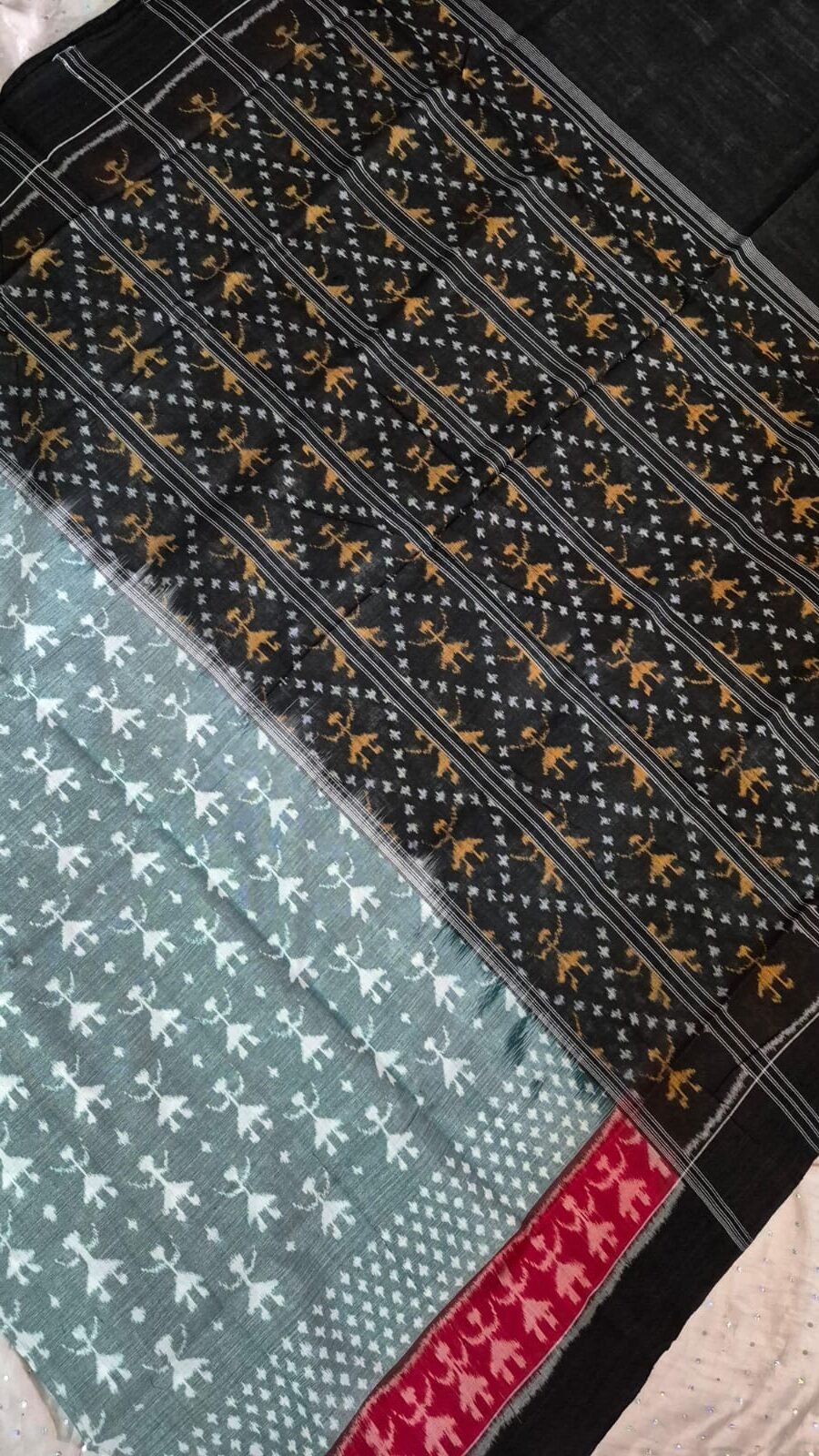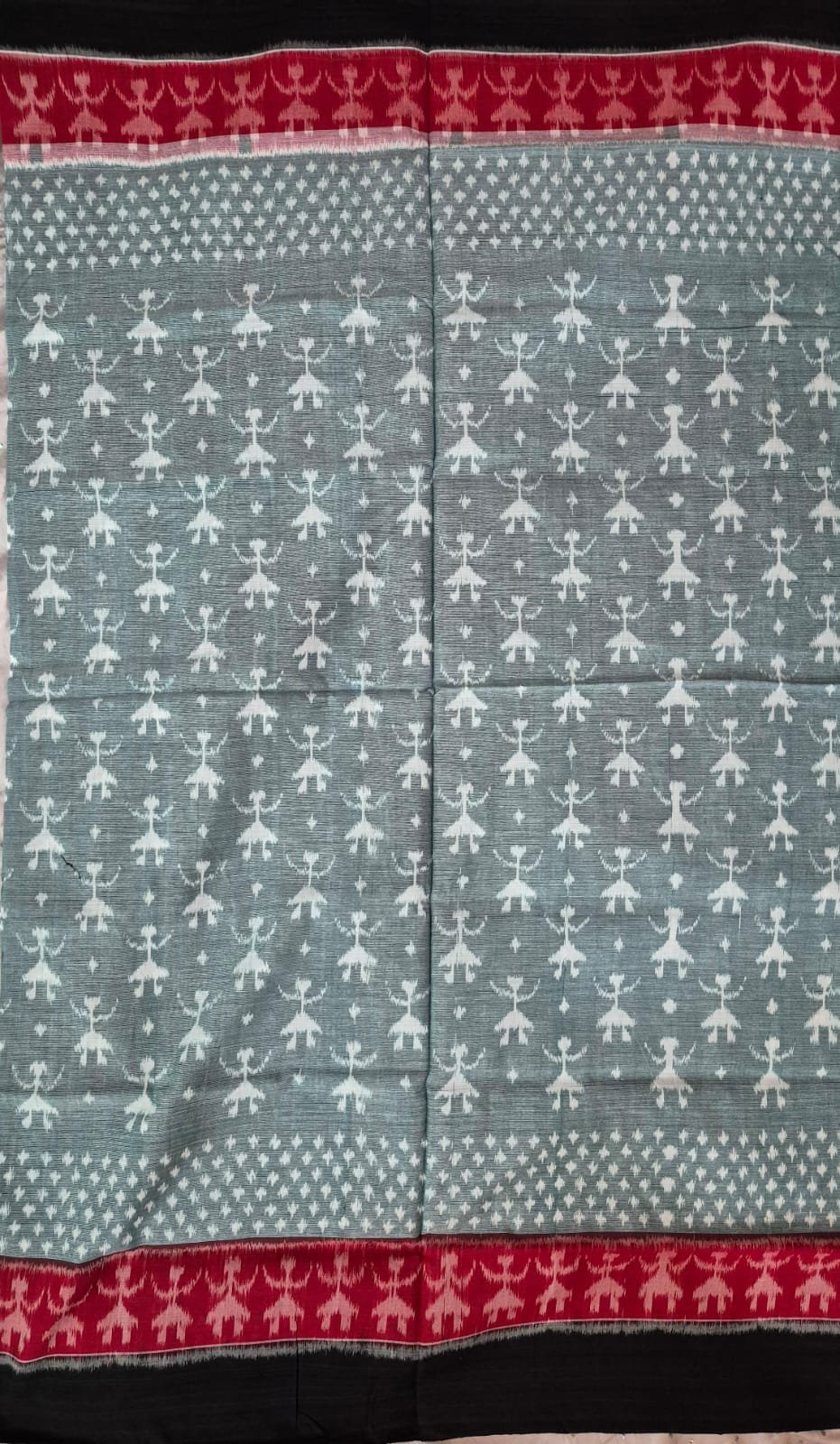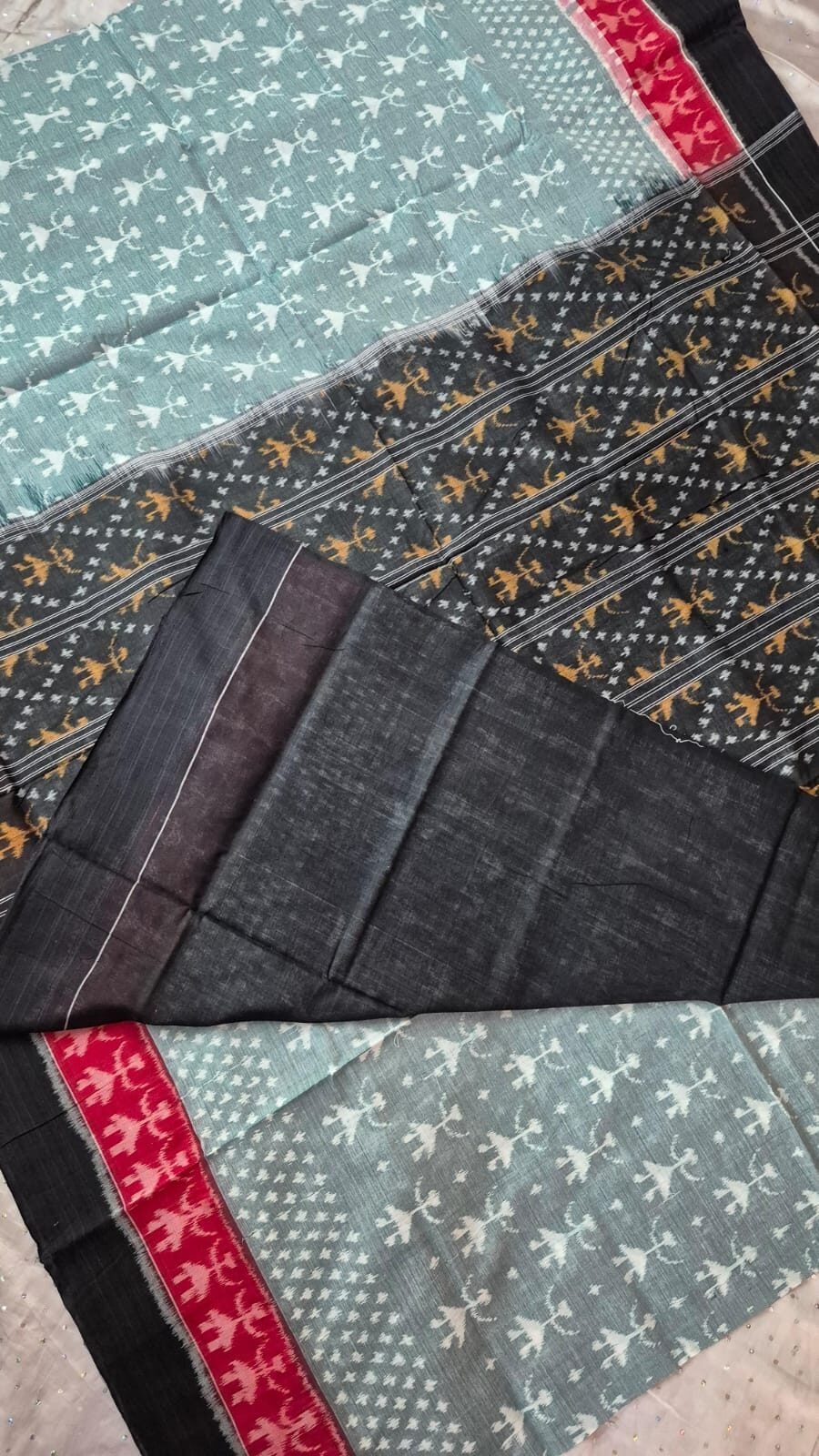 Mint green and black tribal art sambalpuri cotton saree with blouse
