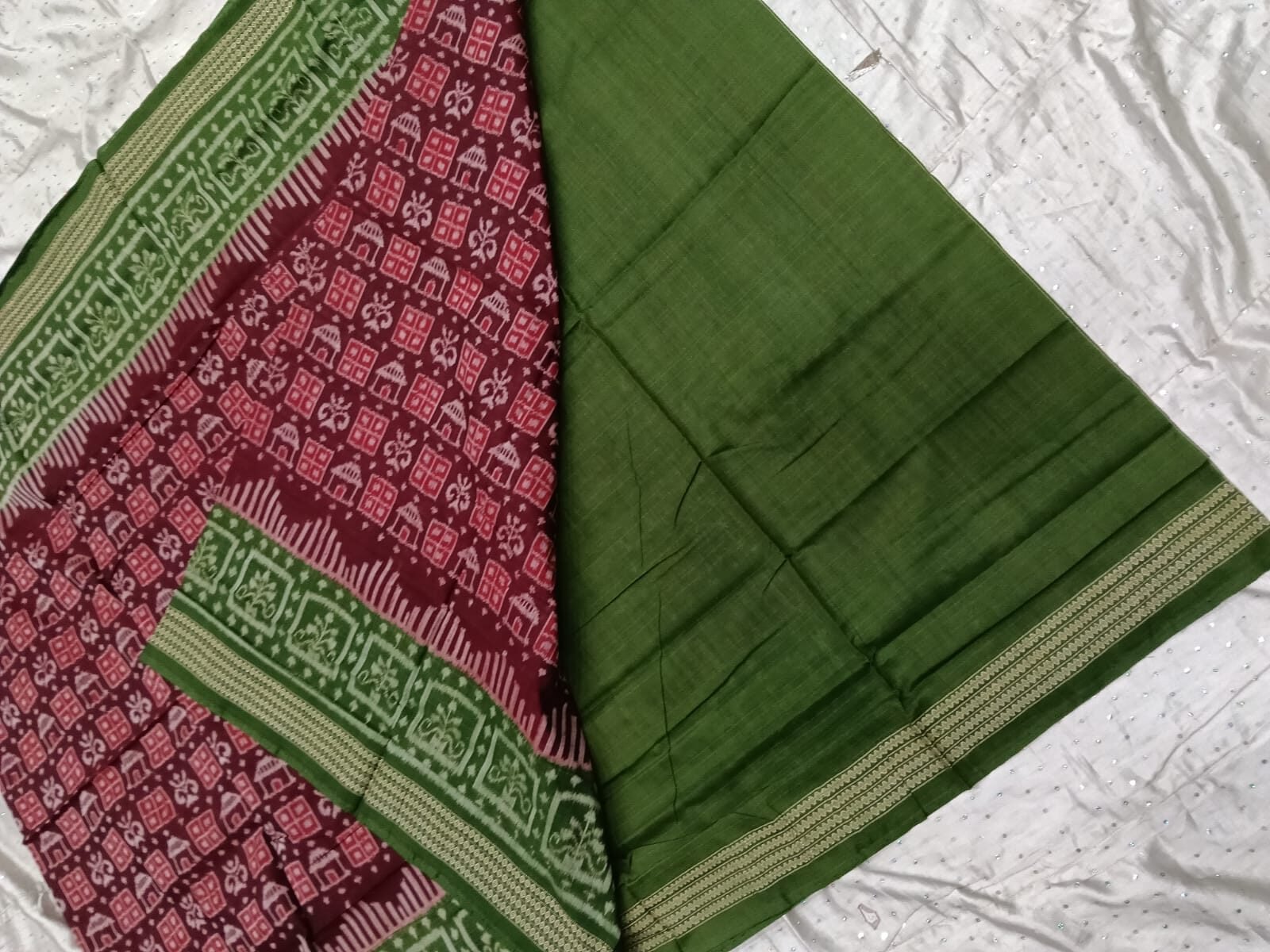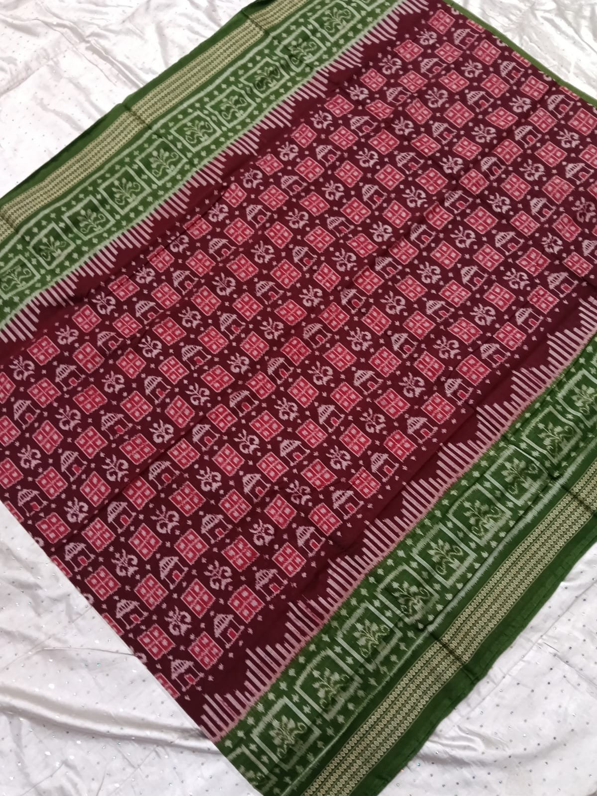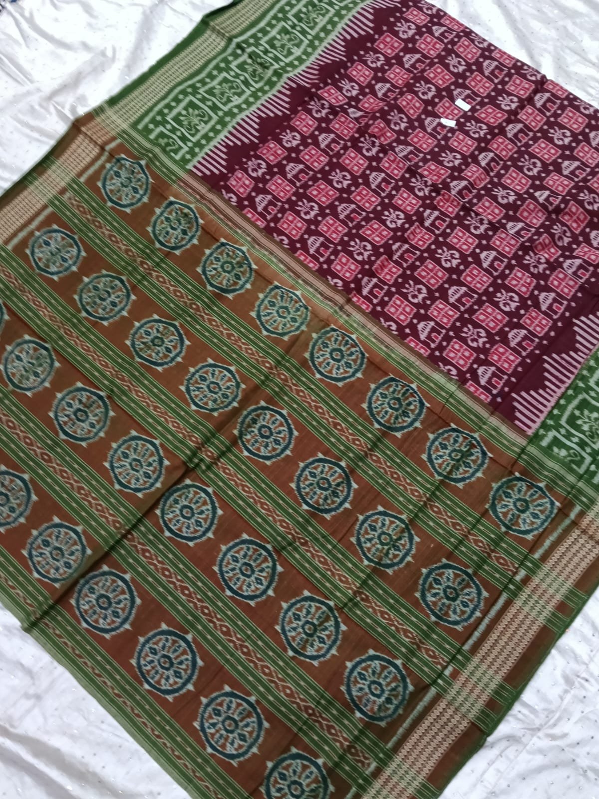 Magenta and green flower pattern sambalpuri cotton saree with blouse