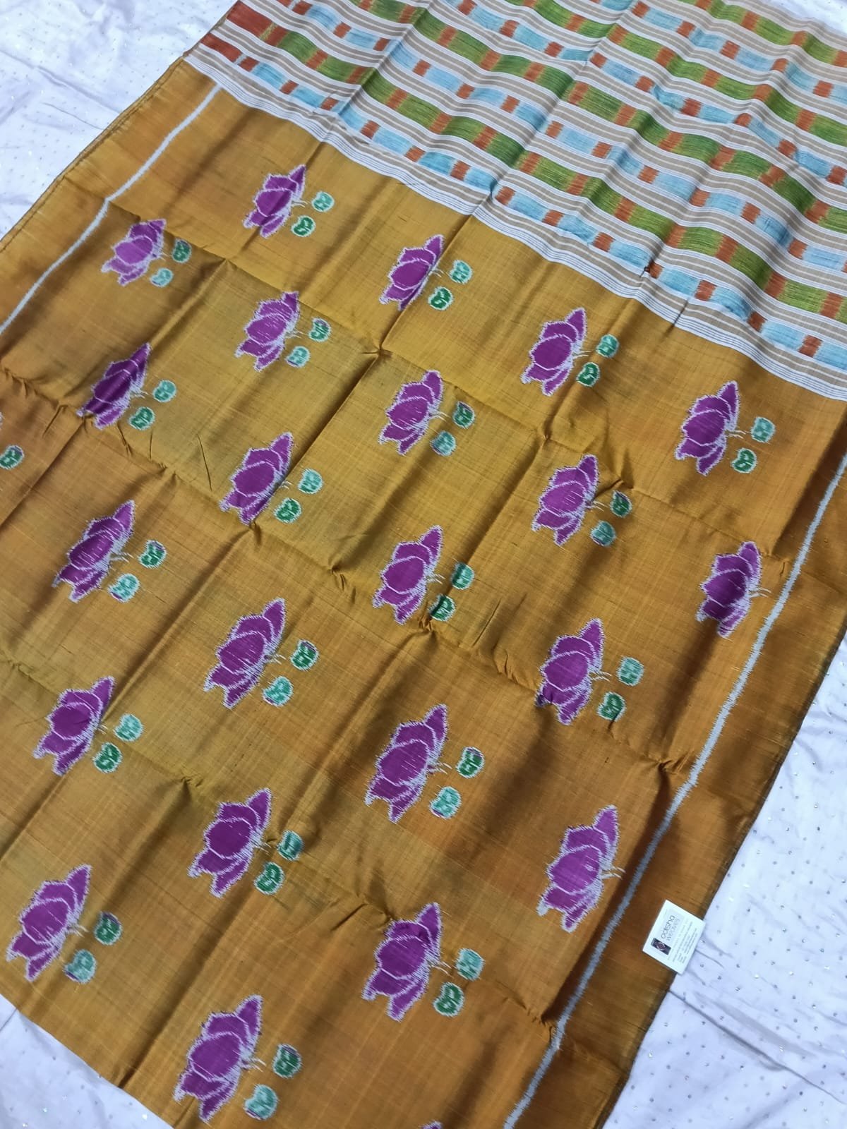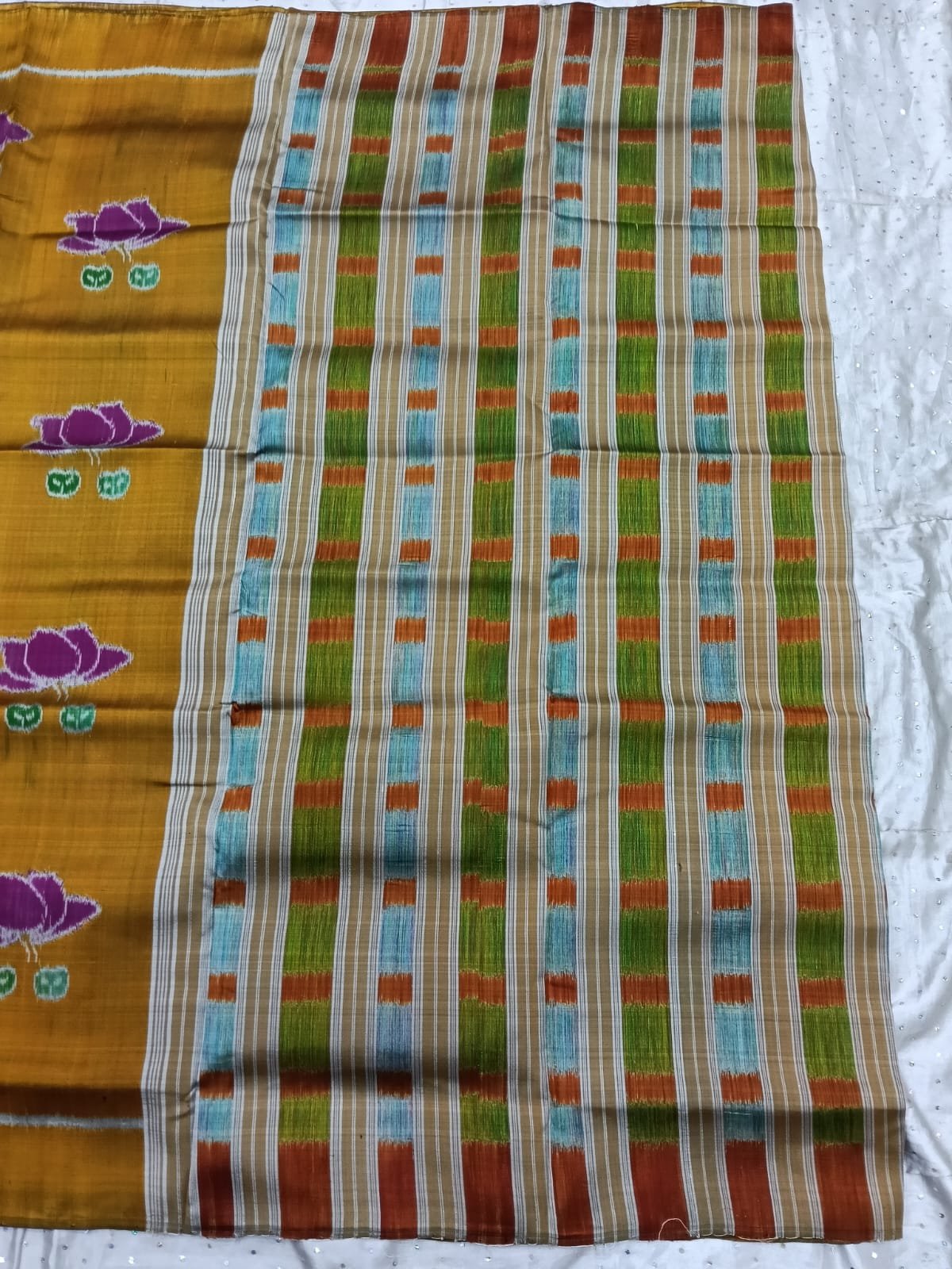Mustard yellow and pink lotus flower khandua silk saree with blouse