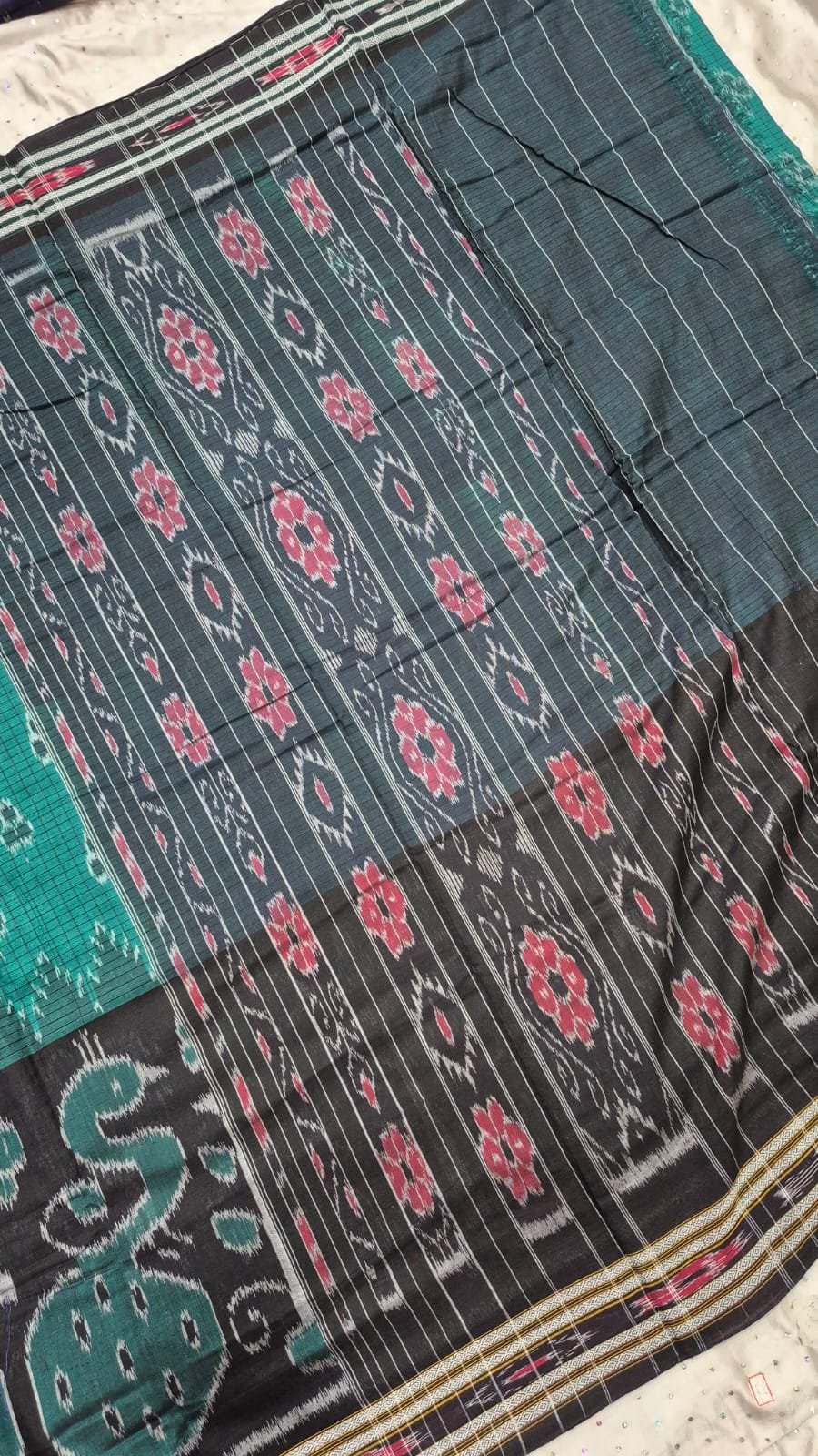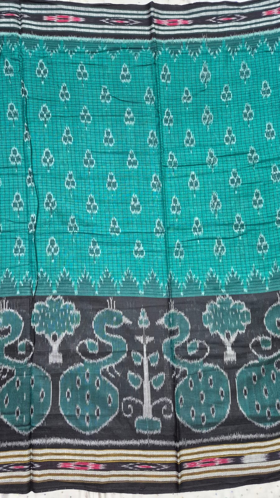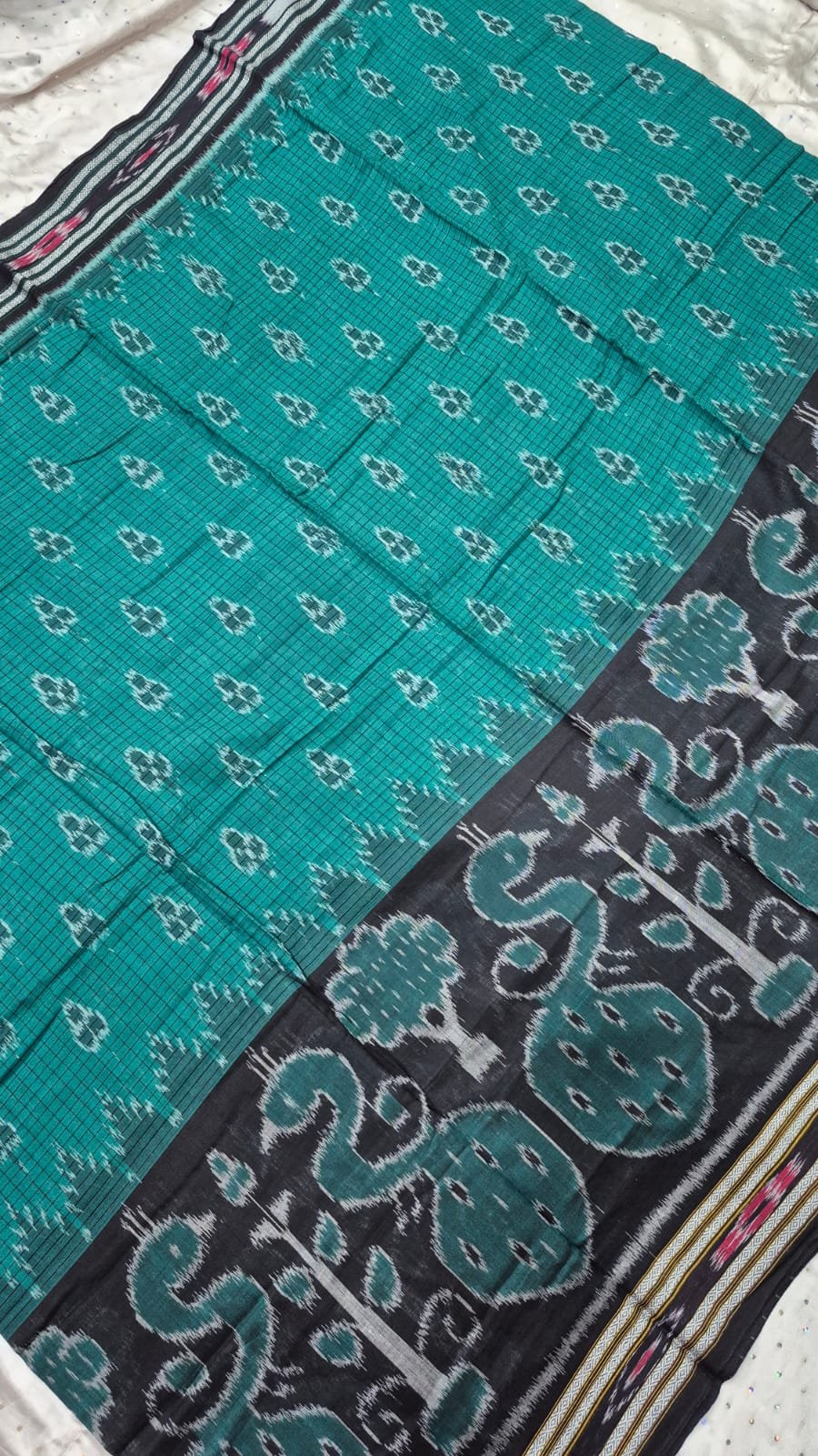Sky and black peacock design sambalpuri cotton saree