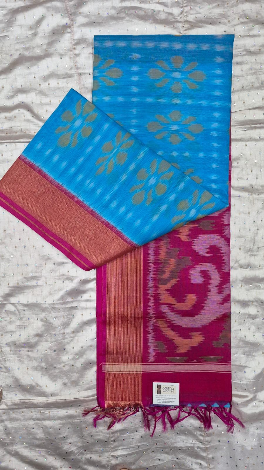 Sky and pink sico silk saree with blouse