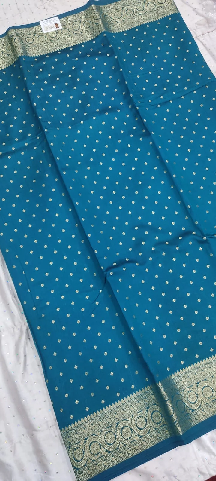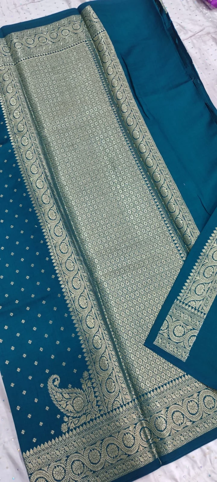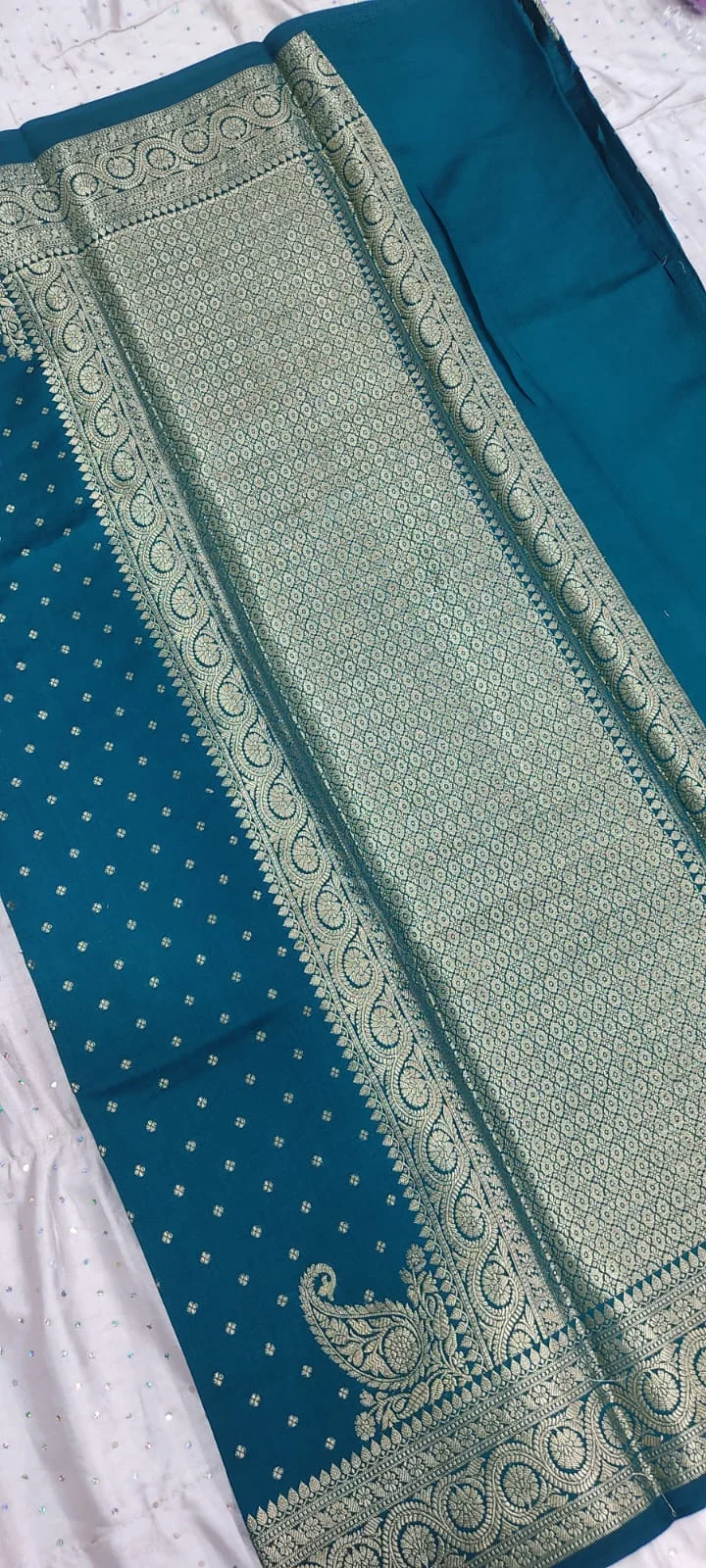 Sky buti pattern pure banarasi soft silk saree with blouse