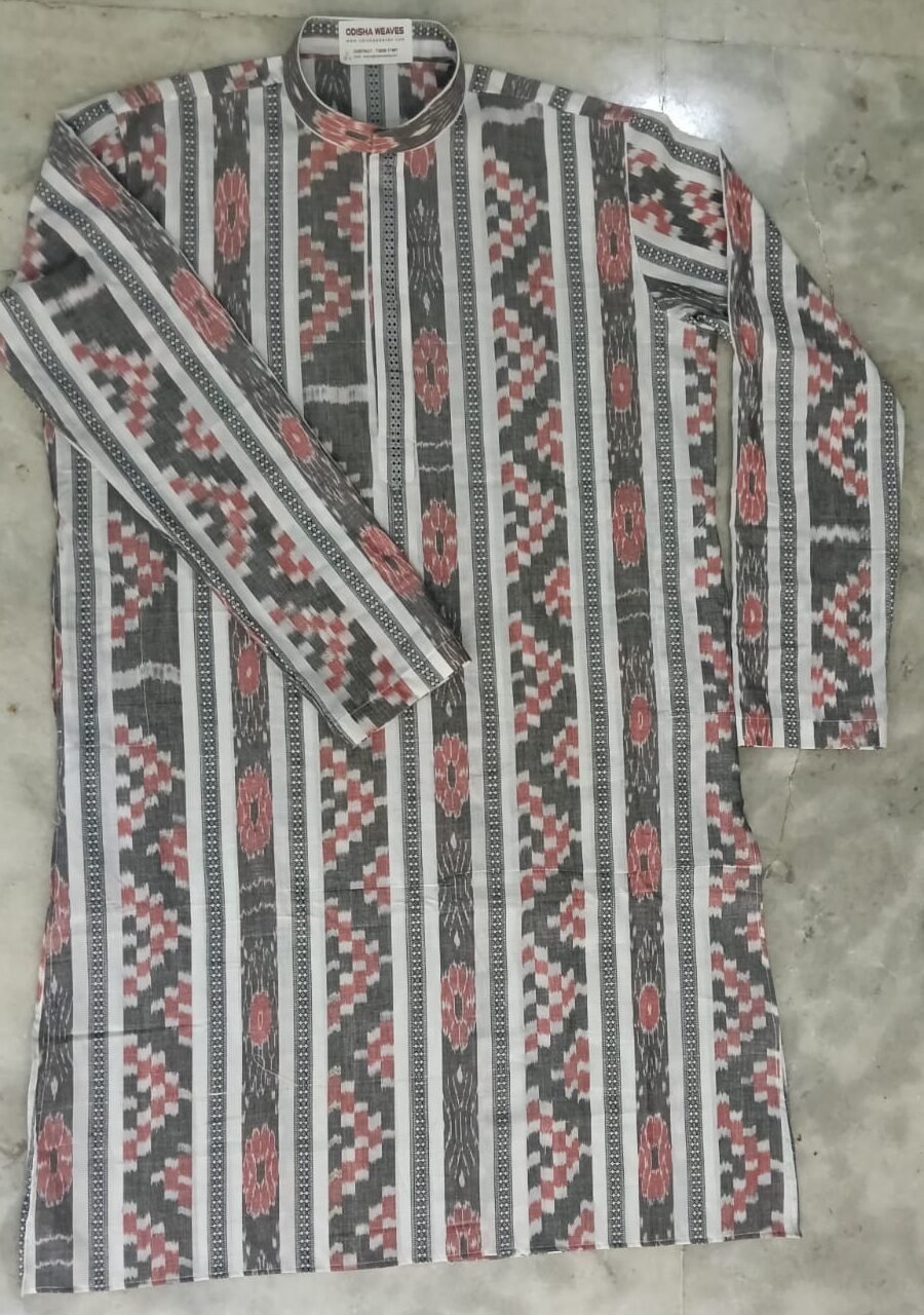 White and gray sambalpuri long kurta