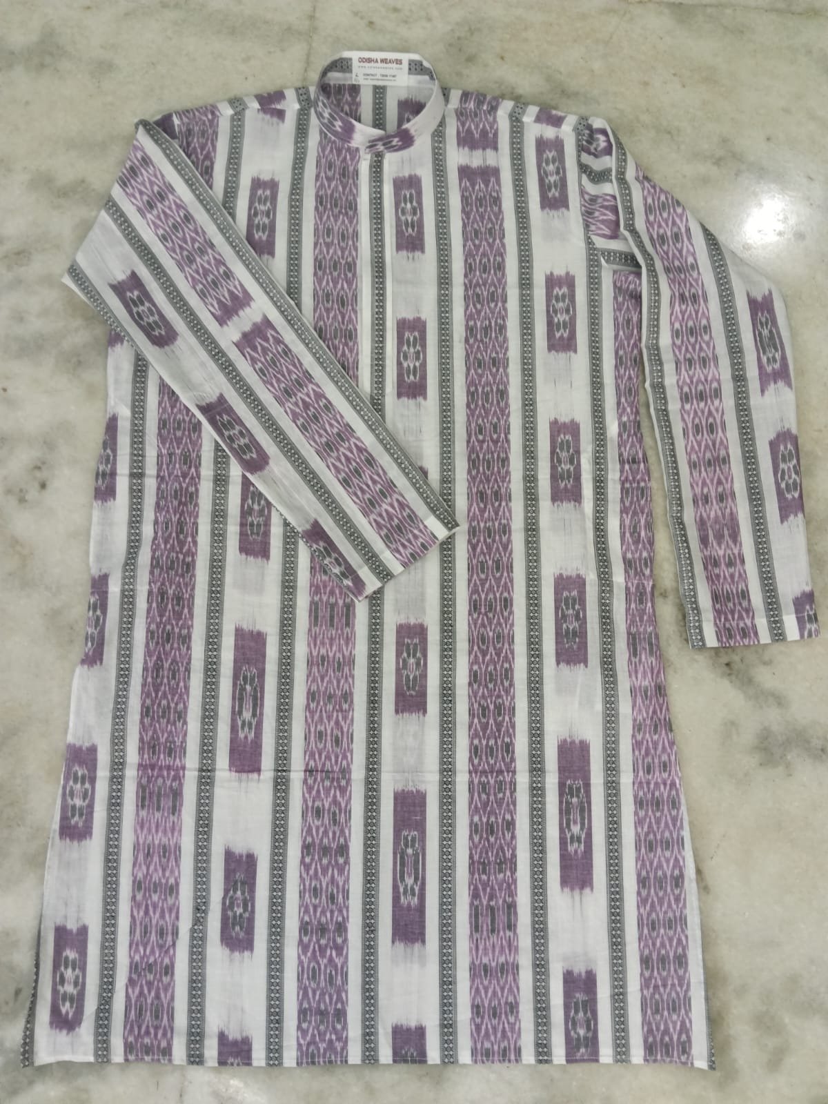 White and purple sambalpuri long kurta