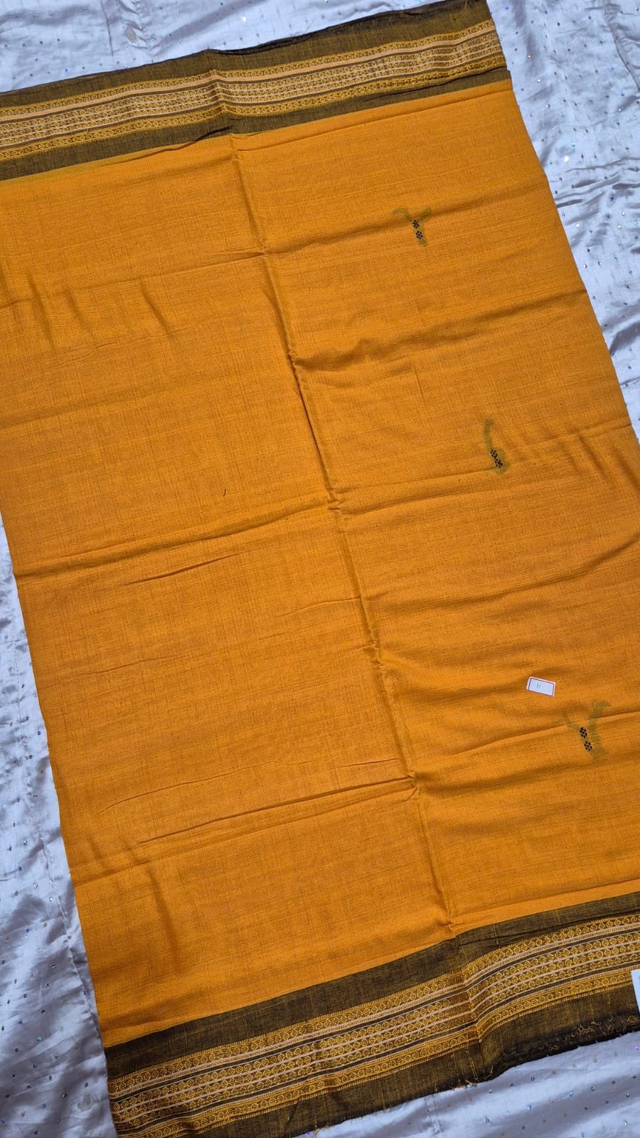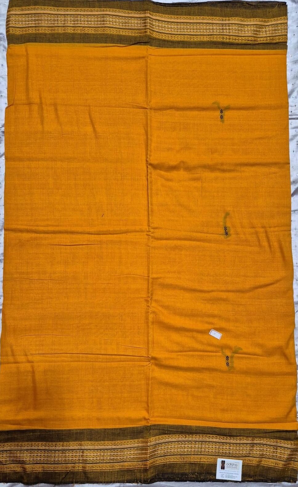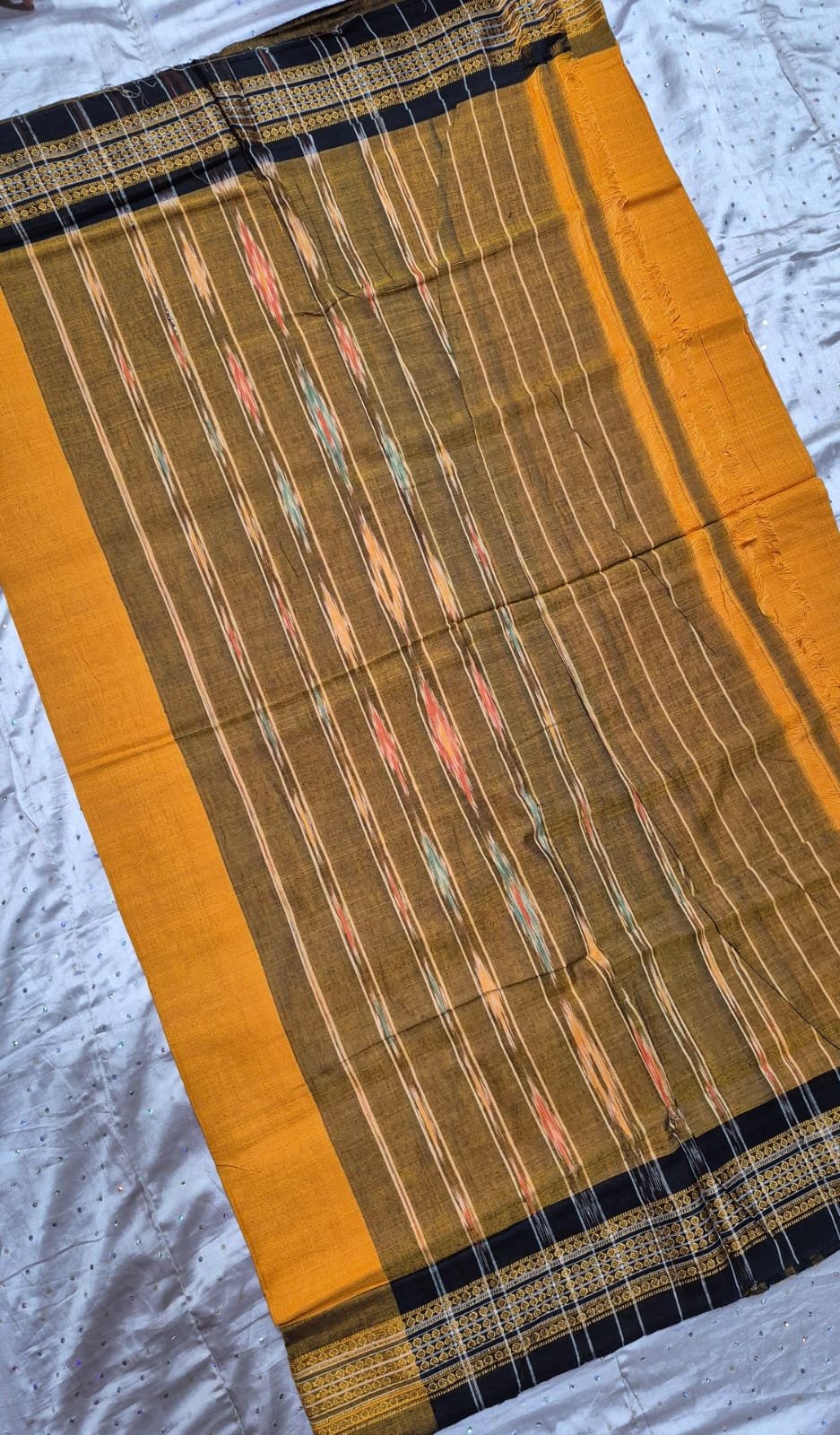 Yellow and brown sambalpuri cotton saree with border