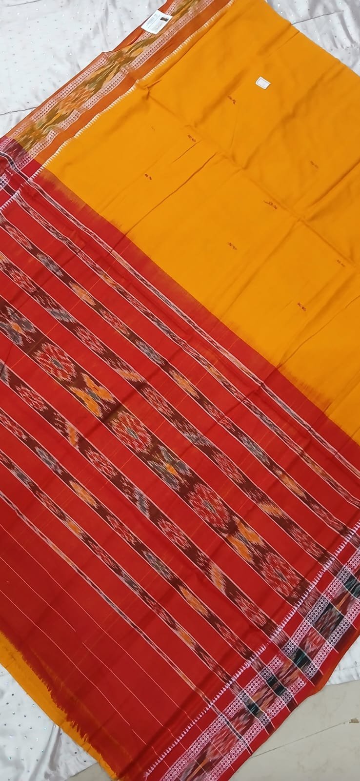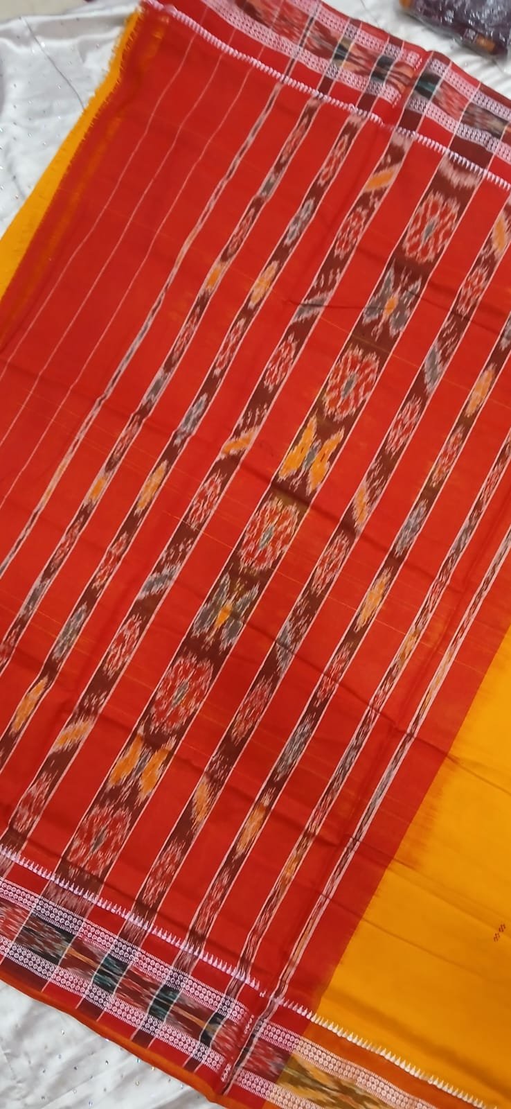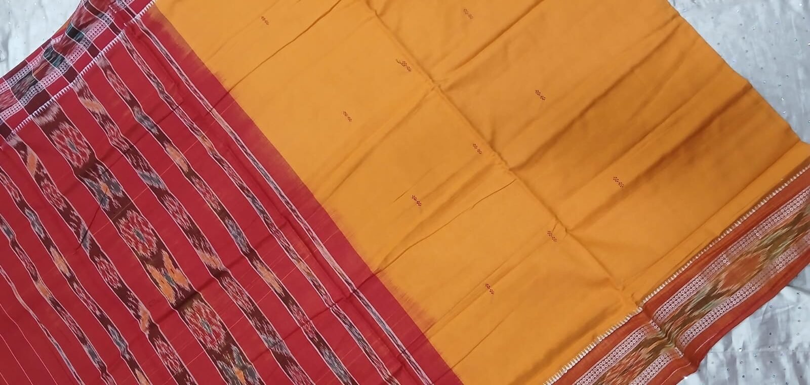Yellow and red sambalpuri cotton saree